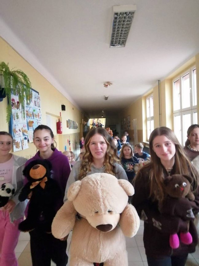 Podczas spotkania, najmłodsi czytelnicy mogli zaprezentować swoje ukochane przytulanki i opowiedzieć związane z nimi historię. Oglądnęli wystawę książek z misiowymi bohaterami, film jak powstaje pluszowy miś oraz na zajęciach plastycznych wykonali misiowe zakładki i lizaki. W Święcie Pluszowego Misia uczestniczyli również starsi uczniowie naszej szkoły. Na dużej przerwie korytarzami szkolnymi przeszła Parada Misiów. Uczniowie starsi i młodsi z dumą prezentowali swoje ukochane przytulanki.