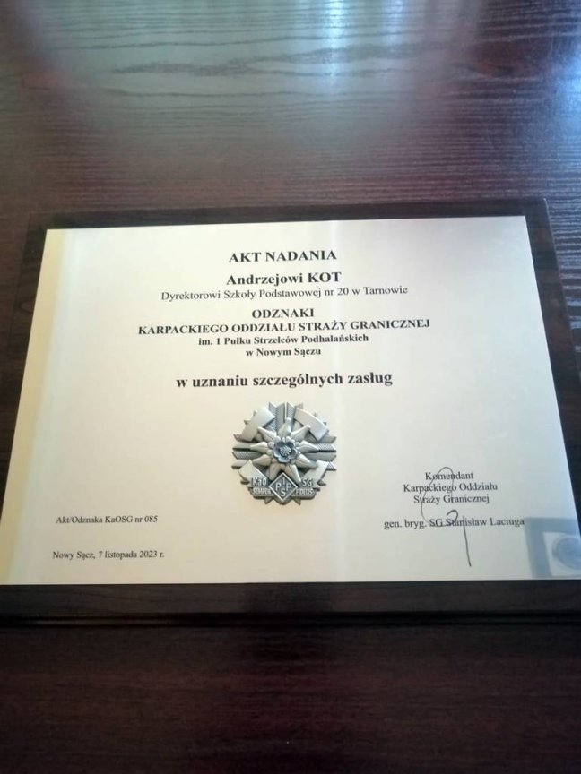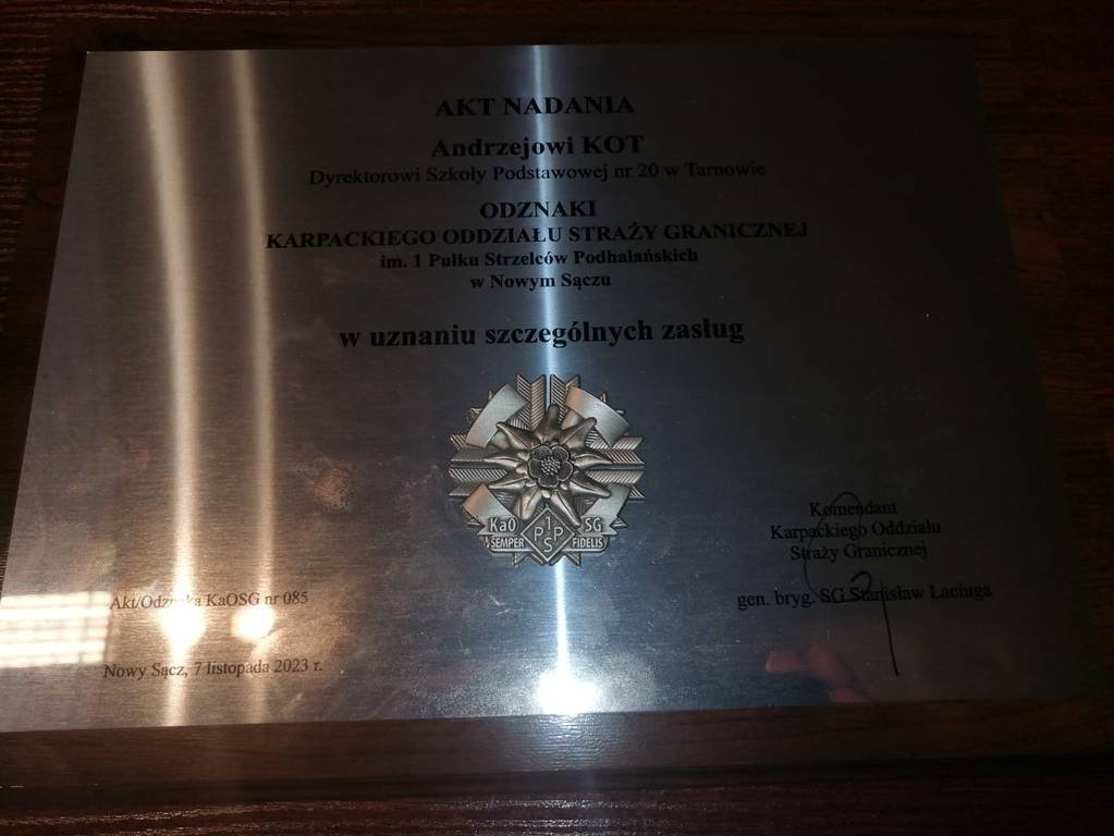 Podczas dzisiejszej uroczystości Komendant KaOSG w krótkim przemówieniu podziękował za służbę i pracę pełnioną przez funkcjonariuszy oraz pracowników Oddziału. Złożył również życzenia i pogratulował odznaczonym, wyróżnionym oraz awansowanym. Dyrektor SP20 podziękował Komendantowi Oddziału SG oraz Komendantowi Placówki SG w Tarnowie za pomoc w realizacji programów nauczania oraz wsparciu dla projektów edukacyjnych realizowanych w szkole.