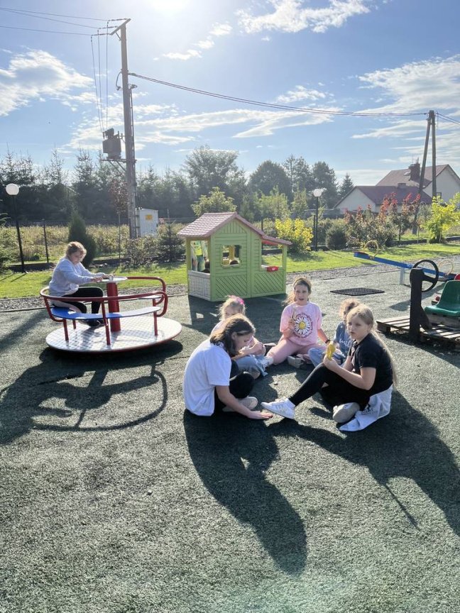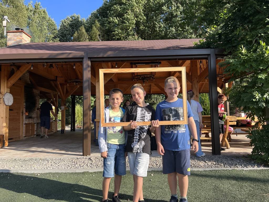 Dzieci integrowały się biorąc udział w różnych zabawach i konkurencjach sportowych. Był czas na rozmowy gry i oczywiście na kiełbaskę z ogniska. Uśmiech nie schodził dzieciakom z twarzy, co widać na zdjęciach.