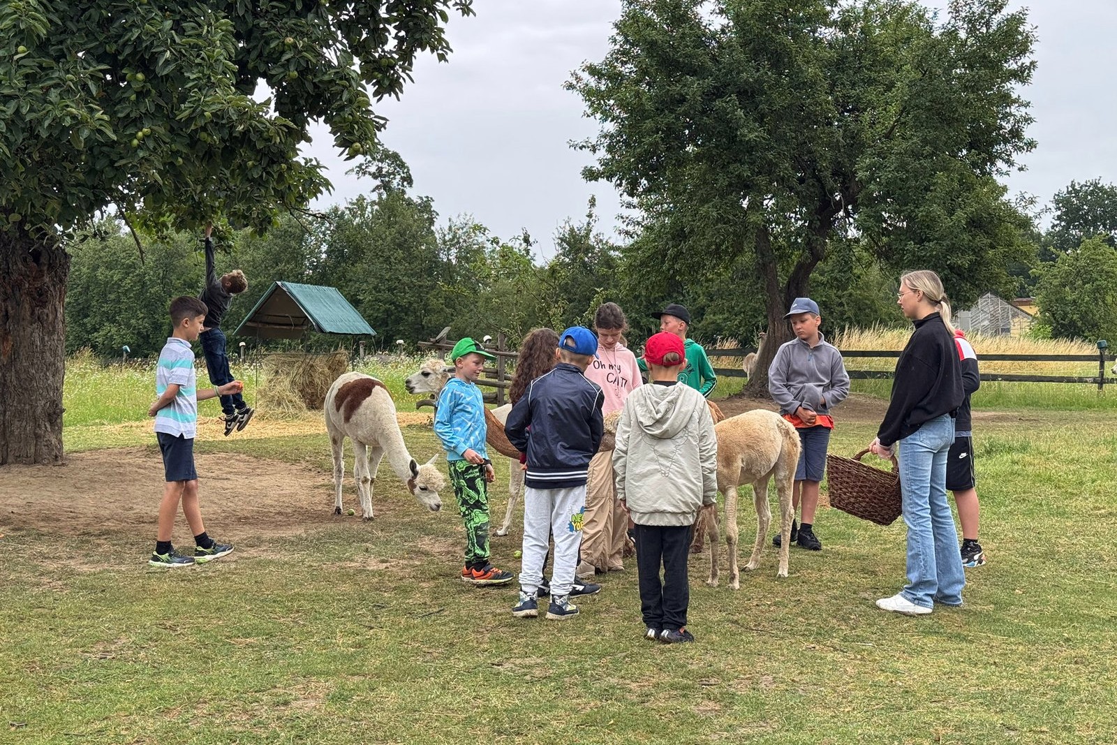 Pomimo pochmurnej pogody półkoloniści z gr. 4,5,6 mieli okazję pojechać do Jaśkowego Sadu w Czchowie, gdzie mogli z bliska głaskać i karmić alpaki.