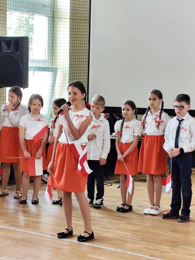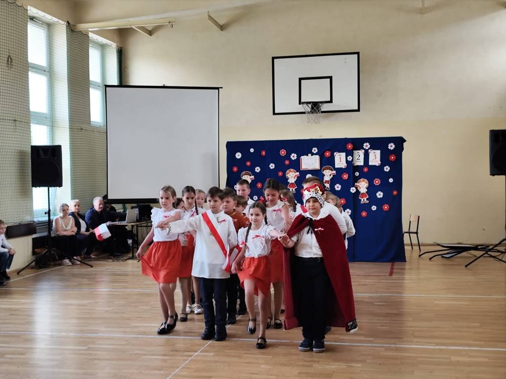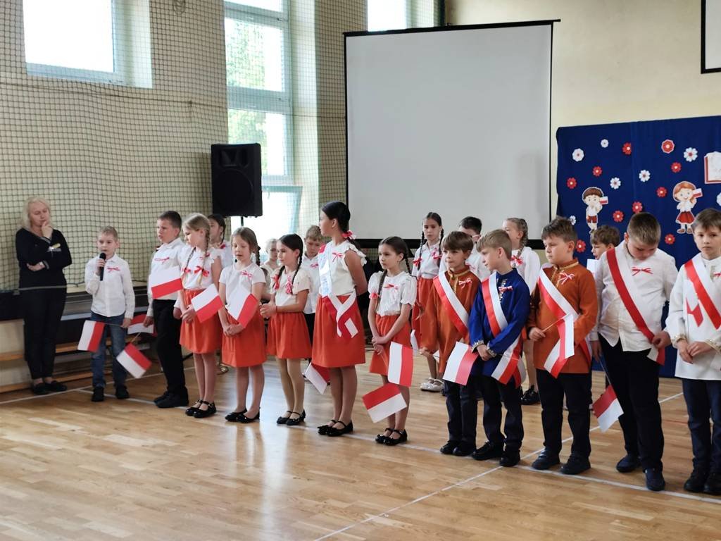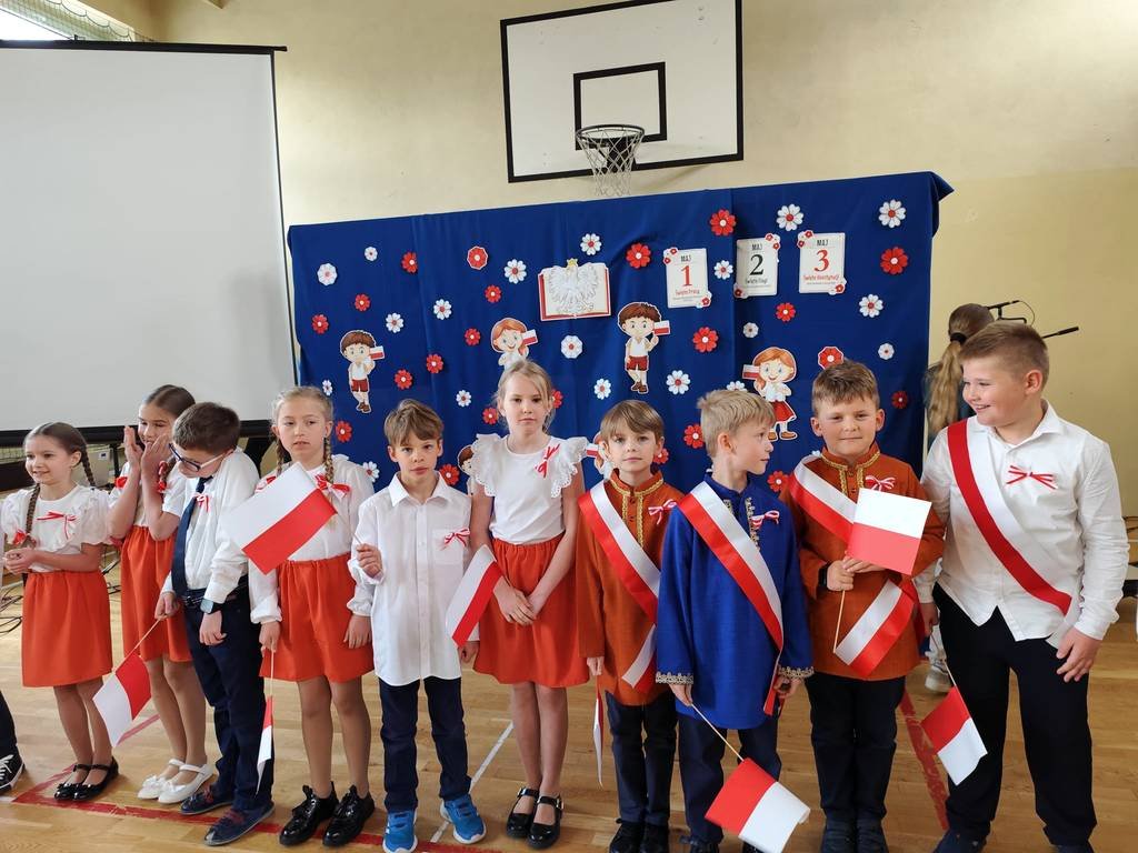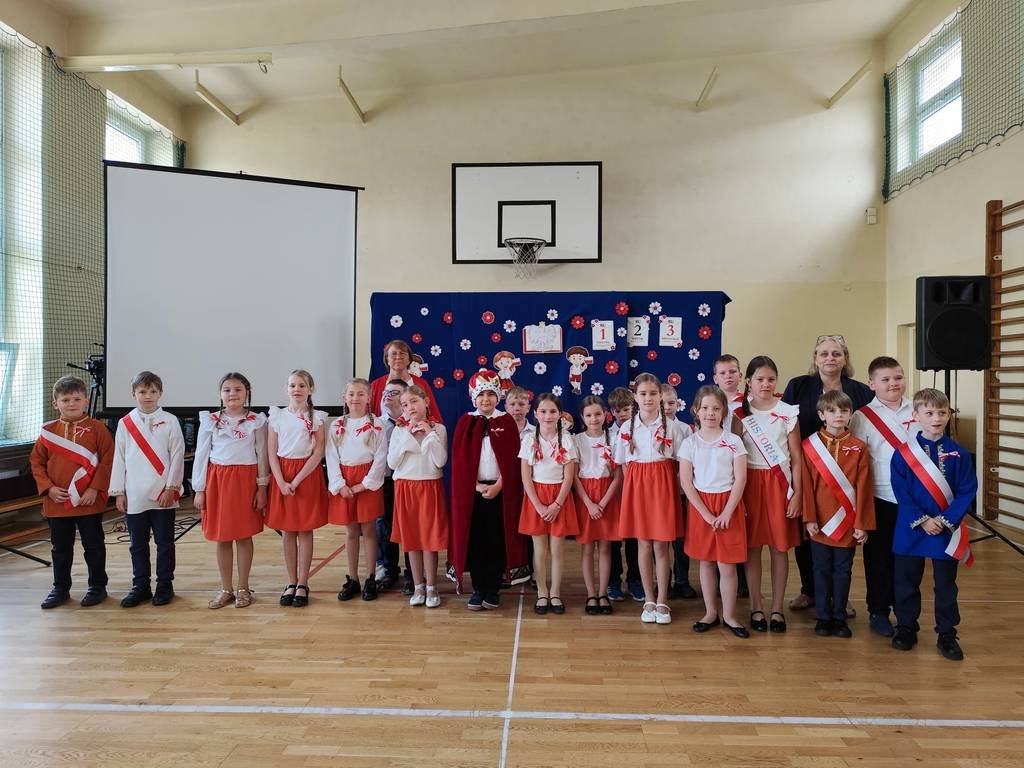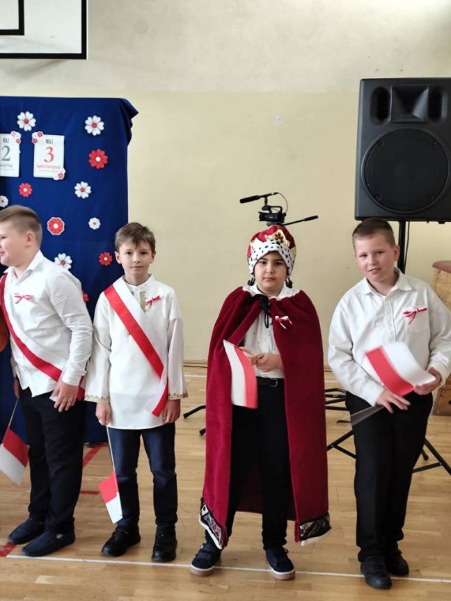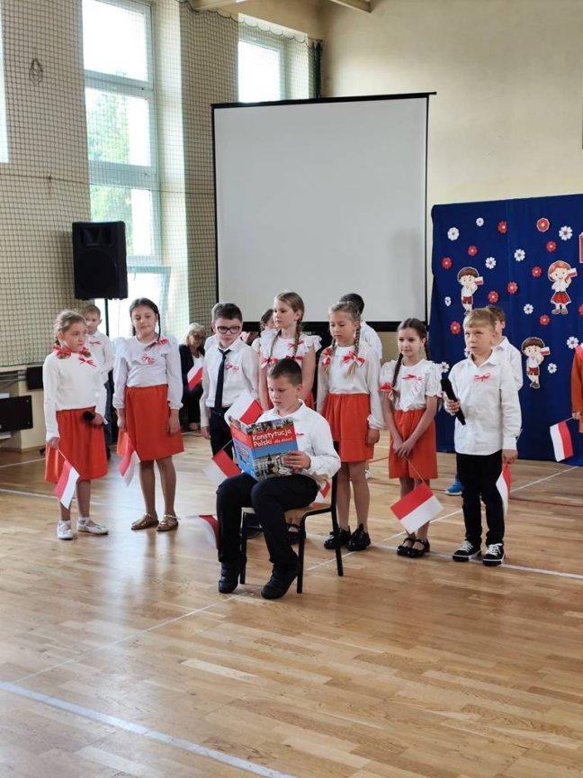 Swoją obecnością uroczystość uświetniła pani Dyrektor Małgorzata Dziki. Uczniowie pod opieką pani Marty i pani Marysi przygotowali montaż słowno - muzyczny. Na szkolnej scenie nie zabrakło twórców konstytucji wraz z królem Stanisławem Augustem Poniatowskim na czele, który zaprzysiągł konstytucję. Akademia była nie tylko hołdem dla przeszłości, ale też ważną lekcją patriotyzmu.