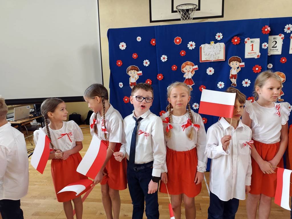 Akademia dla klas 1-3 z okazji świąt majowych. Na początku maja w naszej szkole odbyła się uroczysta akademia z okazji Święta Pracy, Dnia Flagi i Konstytucji 3 Maja przygotowana przez uczniów klasy 2a.