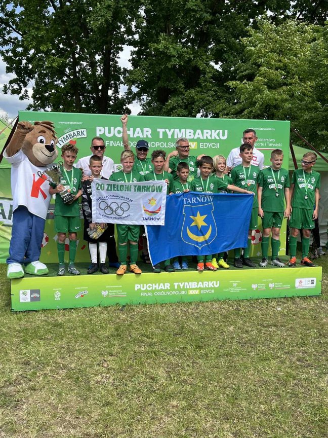 Od 3 czerwca brali udział w Ogólnopolskim Finale o Puchar Tymbarku. W grupie tylko jedna bramka dzieliła chłopaków od awansu do ścisłego finału. Zespoły z naszej grupy z Podkarpacia i Wielkopolski odpowiednio zajęły 2 i 3 miejsce. Ostatecznie SP 20 z Tarnowa zajęła 13 miejsce w Polsce przegrywając dwa mecze, jeden remisując oraz trzy wygrywając. Podsumowaniem finałów był udział w towarzyskim meczu Polska- Mołdawia na stadionie śląskim w Chorzowie. Kolejnym etapem był udział w Międzynarodowym Turnieju Strahov Cup w Pradze. W Czechach uczniowie SP 20 zajęli 3 miejsce pokonując m.in. zespoły z Danii Czech i Polski. Był również czas na rozrywkę: zwiedzanie Pragi i Ostrawy. Gratulujemy zawodnikom z klasy 5.
