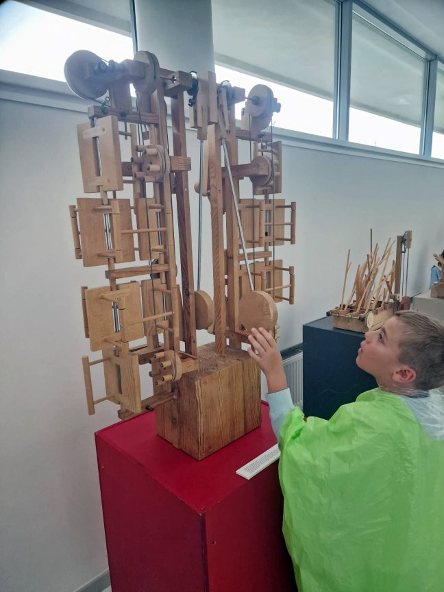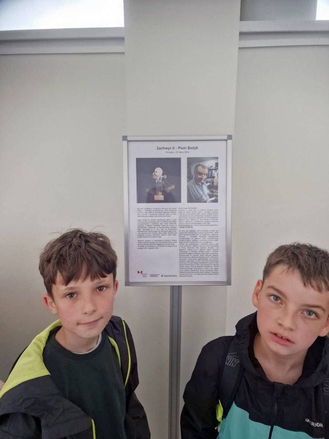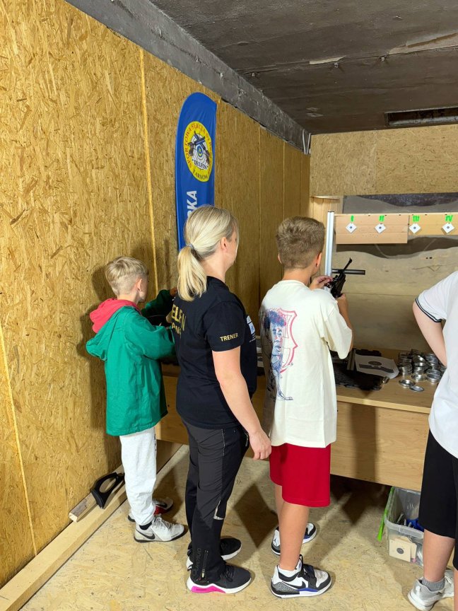 Po seansie oglądali wystawę "Zachwyt II" prof. Piotra Bożka wybitnego przedstawiciela sztuki kinetycznej w Polsce. Pozostali półkoloniści wzięłi udział w zajęciach na strzelnicy DELFIN w Tarnowie. Pod okiem instruktorów mieli okazję zapoznać się z zasadami bezpiecznego posługiwania się bronią. Zajęcia odbywały się w atmosferze skupienia i sportowej rywalizacji, a wielu uczniów wykazało się dużą precyzją.