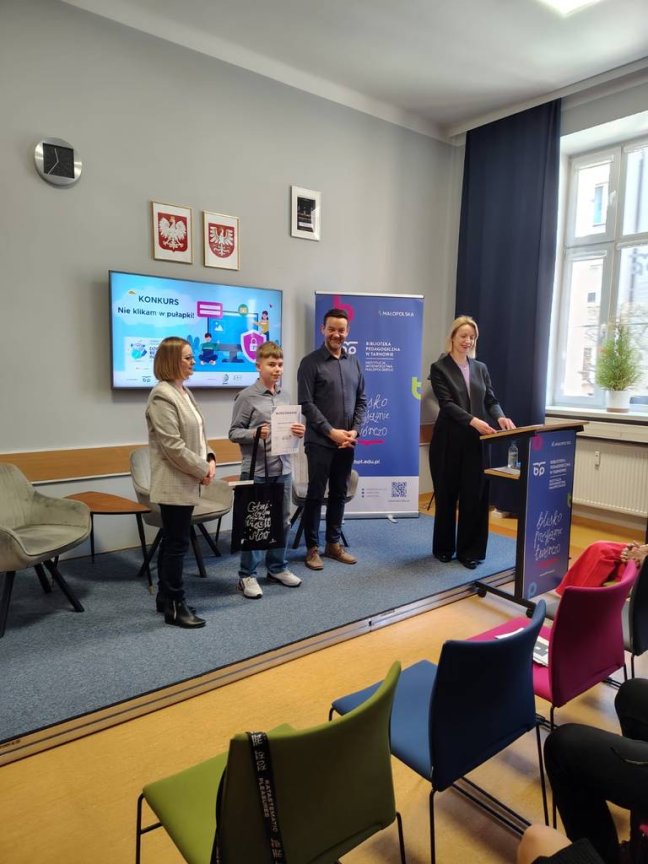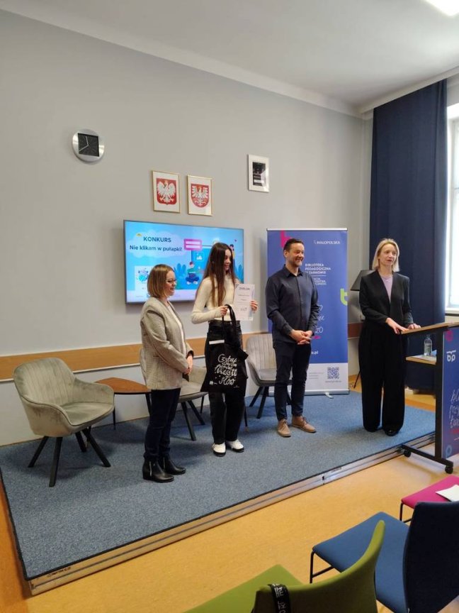 12 marca w Bibliotece Pedagogicznej odbyło się wręczenie nagród w konkursie „Nie klikam w pułapki”. W ósmej edycji konkursu uczestniczyli uczniowie naszej szkoły.