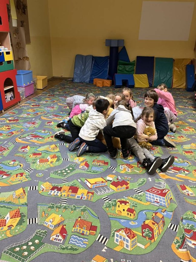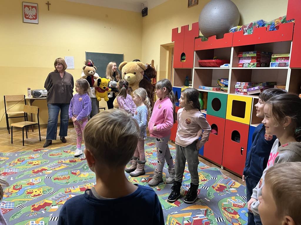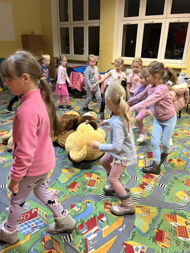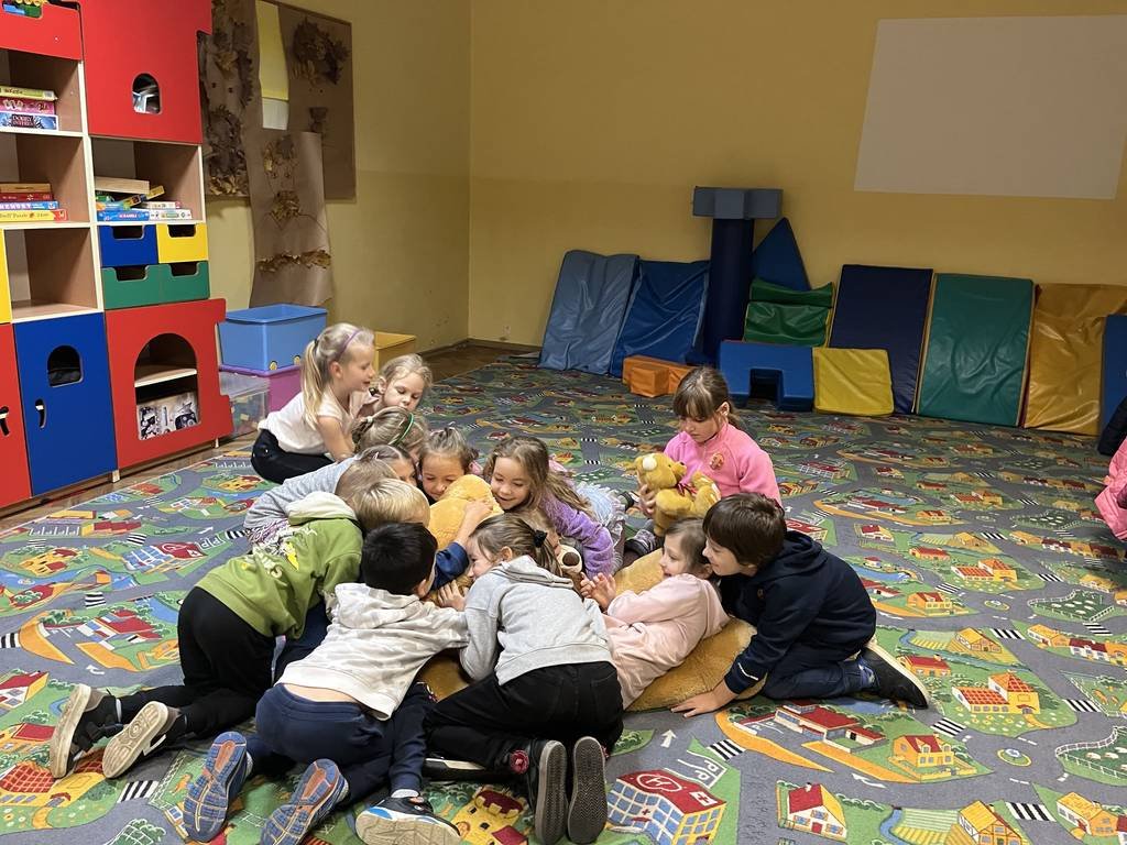 Dzisiaj odbyły się kolejne popołudniowe zajęcia z przedszkolakami „Misiowe bajania”. Dzieci opowiadały o swoich misiowych przytulankach, poznały historię pluszowego misia.