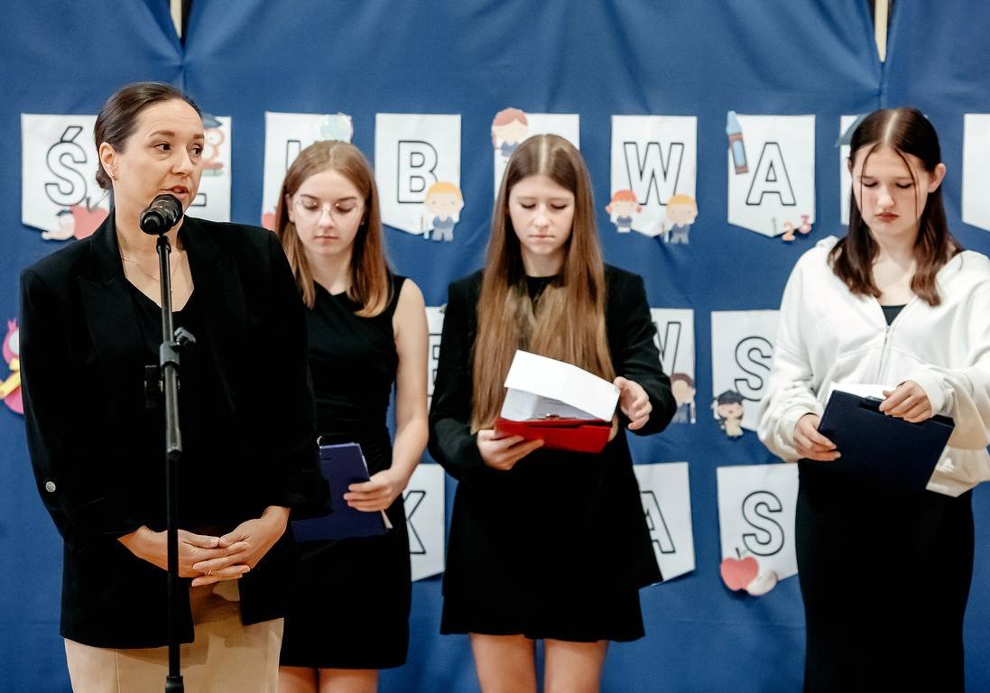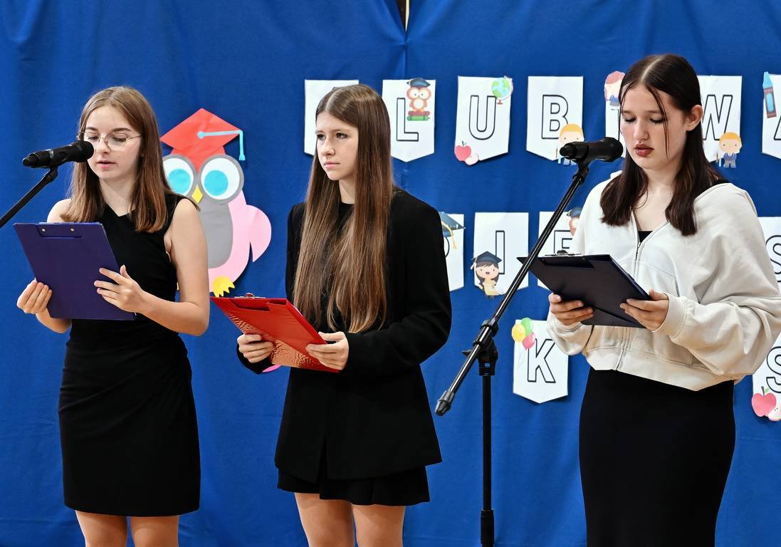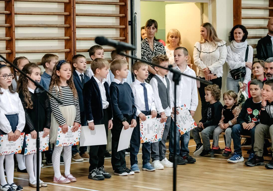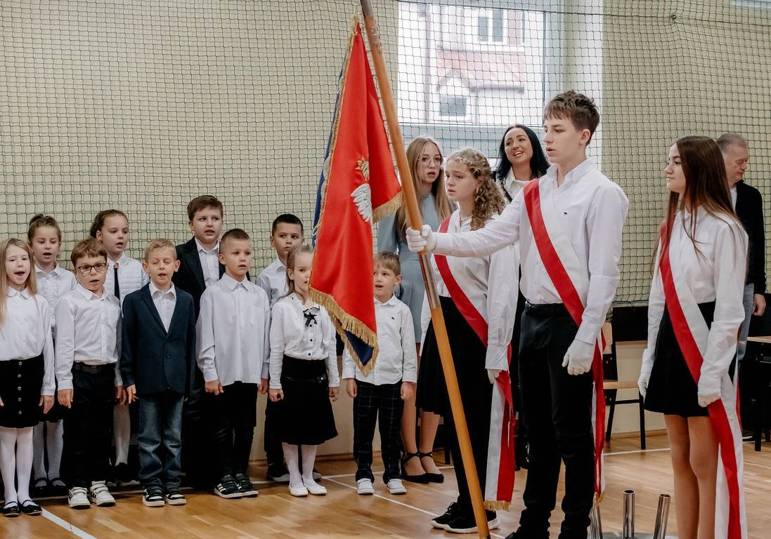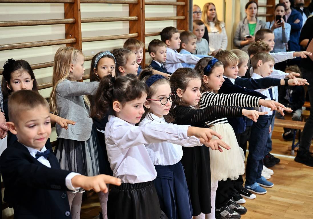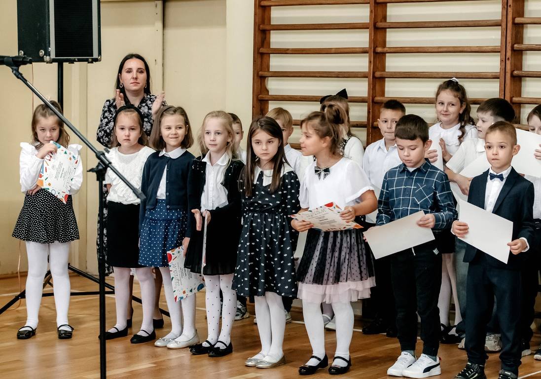 W tym dniu dzieci oficjalnie przyjęte zostały do grona uczniów szkoły. Najważniejszą częścią uroczystości, na którą wszyscy czekali było ślubowanie oraz pasowanie wielkim piórem przez Dyrektor Szkoły. Pierwszaki głośno i z przekonaniem przyrzekały być dobrymi i pilnymi uczniami oraz rzetelnie wypełniać swoje obowiązki, o czym przypominać im będą otrzymane dyplomy. Na koniec uczniowie klasy 2a pod opieką wychowawczyni Marty Kamykowskiej przygotowali występ dla wszystkich obecnych na uroczystości. Wszystkim pierwszoklasistom w tak ważnym dla nich dniu życzymy wielu sukcesów na nowej drodze w murach naszej szkoły.