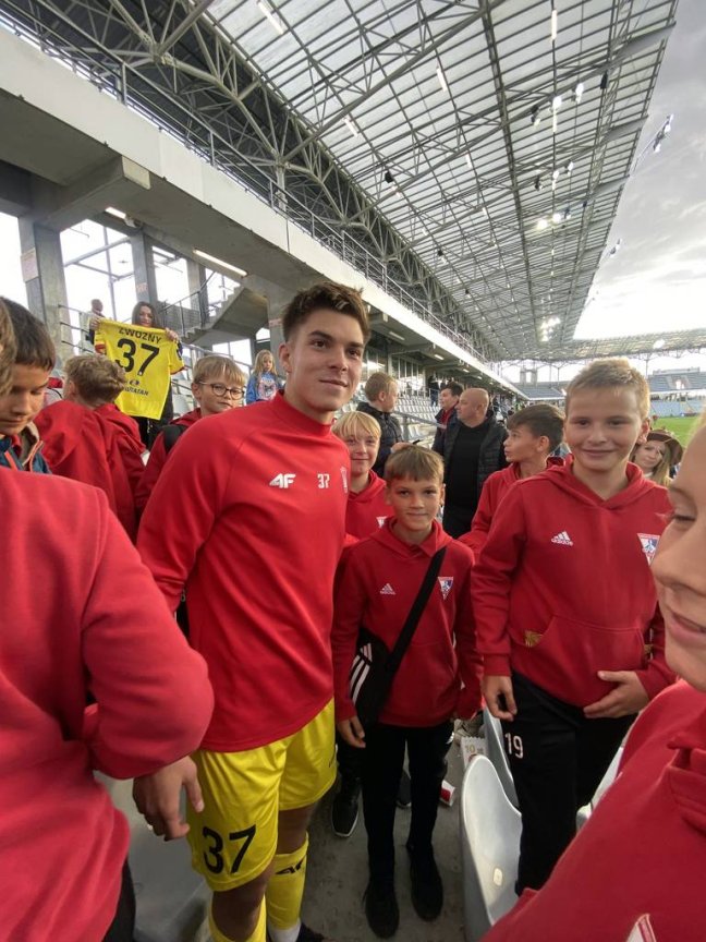 Z dumą podziwialiśmy grę naszego absolwenta Huberta Zwoźnego. Było nam niezwykle miło, kiedy ten zawodnik ekstraklasy, tuż po meczu przyszedł na nasz sektor, żeby osobiście się przywitać. Hubertowi życzymy wielu spektakularnych akcji na boisku!