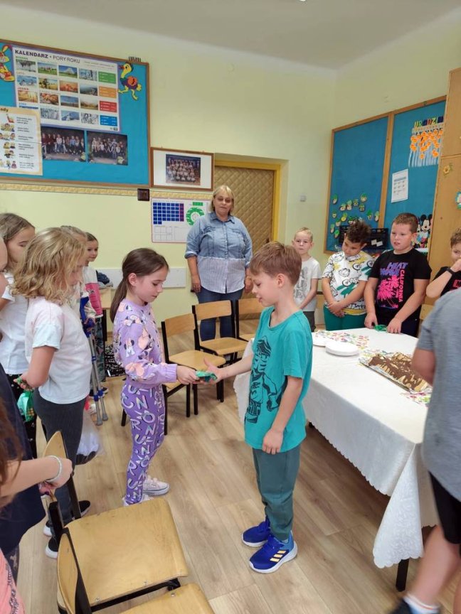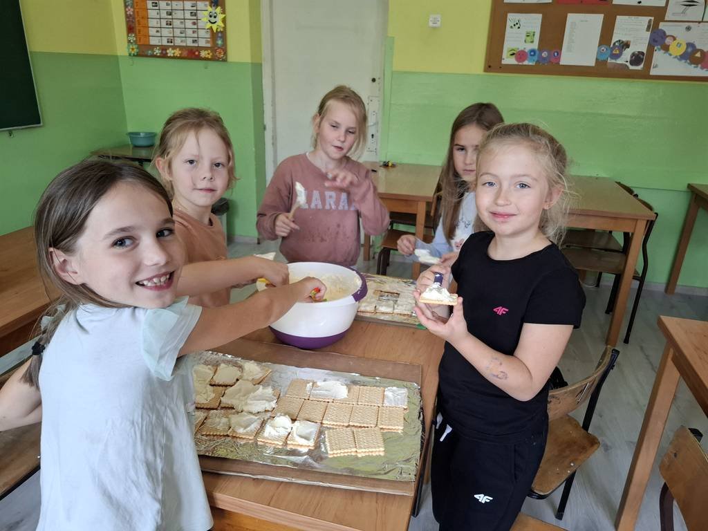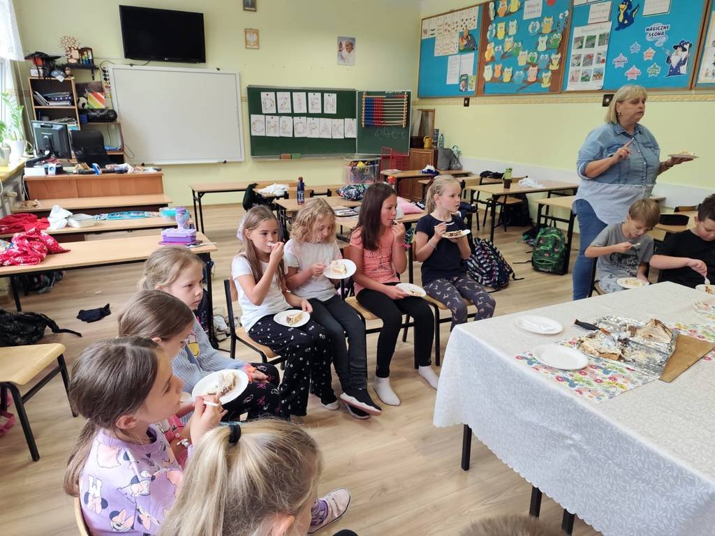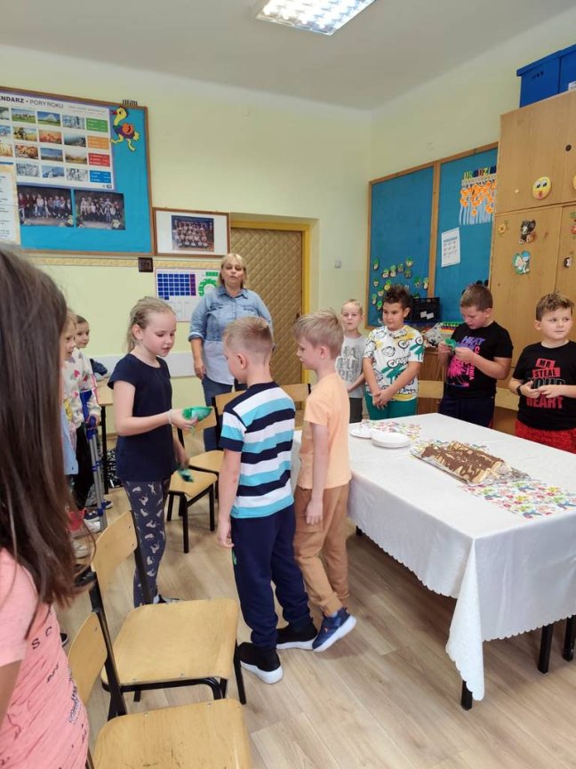 Przygotowały pyszną „ Chatkę Puchatka” z okazji Dnia Chłopaka. Następnego dnia nakryły obrusem stół, odśpiewały kolegom “Sto lat” i złożyły najserdeczniejsze życzenia! Nie zabrakło również drobnych upominków ufundowanych przez Rodziców. Wszystkim uczniom dopisywał dobry humor, a wykonane zdjęcia będą miłymi wspomnieniami tych chwil.