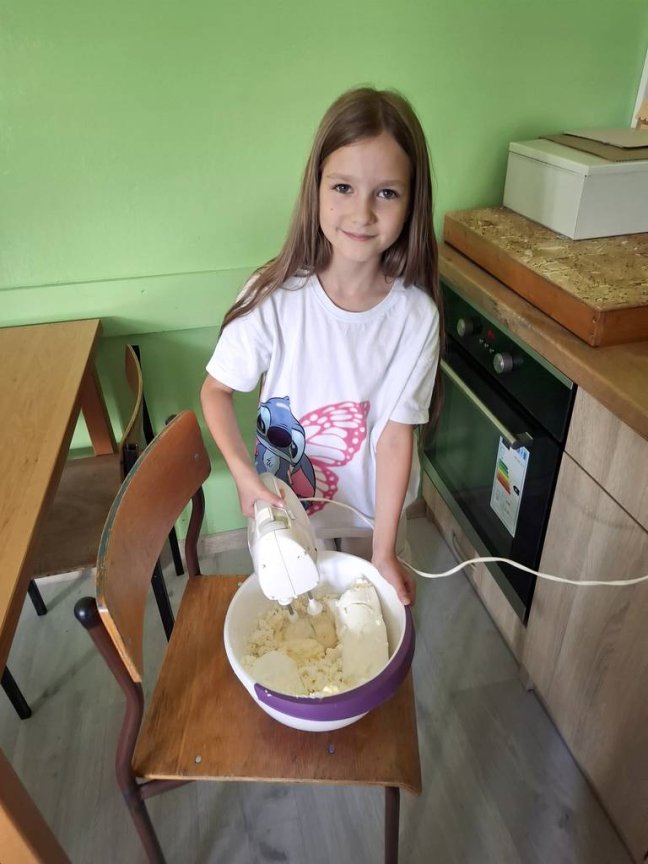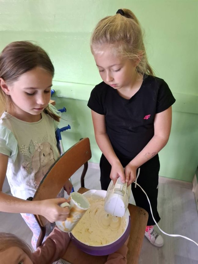 Dzień wcześniej pod opieką wychowawcy dziewczynki z wielkim zaangażowaniem przeobraziły się w małe kucharki.