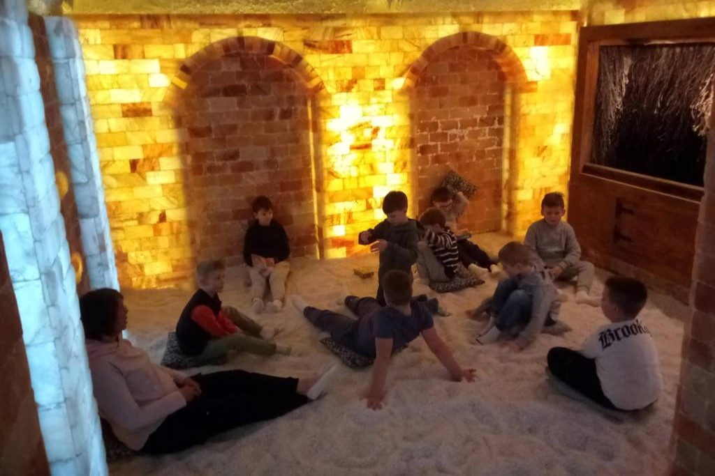 Wizyta uczniów klasy 2a z okazji Pierwszego Dnia Wiosny do Groty Solnej miała charakter profilaktyczno- zdrowotny.