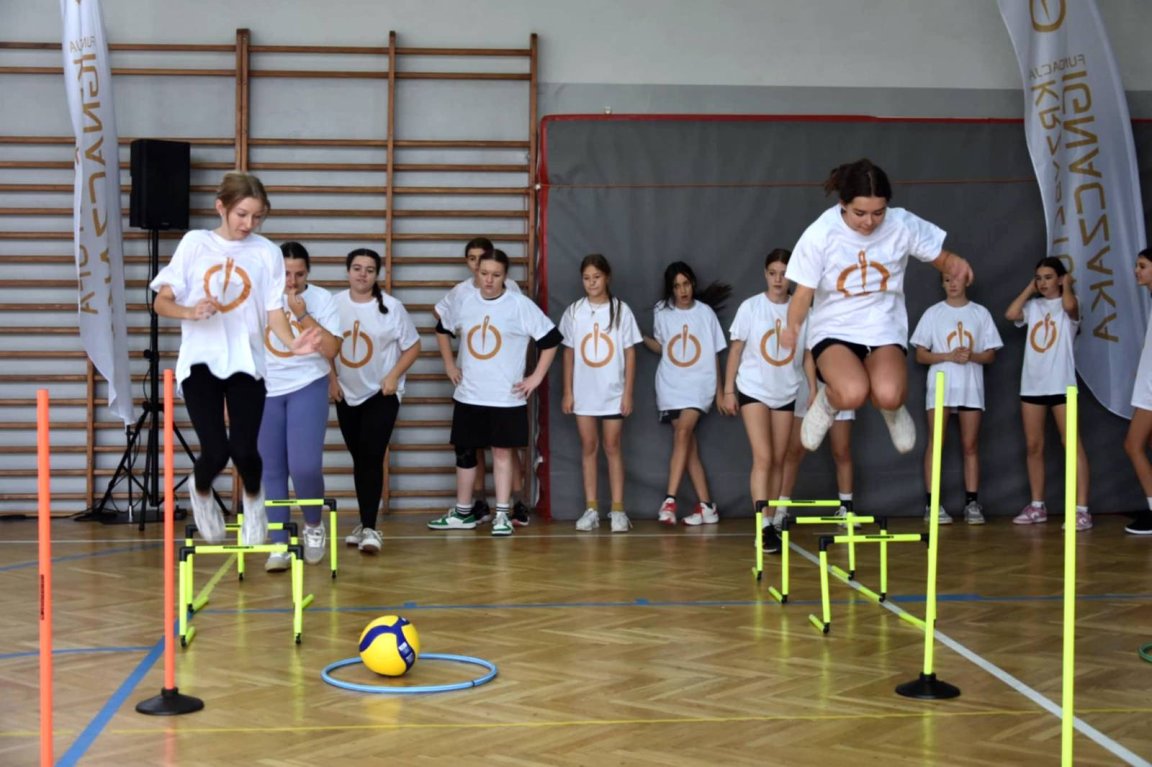 Lekcję poprowadzili znani sportowcy: Krzysztof Ignaczak, Milena Sadurek oraz Dawid Dryja. Zajęcia miały na celu promocję aktywności fizycznej i sportowego stylu życia. Uczniowie z dużym zaangażowaniem uczestniczyli w grach i ćwiczeniach, a spotkanie przebiegło w radosnej i energicznej atmosferze. Oprócz wspólnych ćwiczeń i zabaw sportowych odbyła się również ciekawa pogadanka na temat zdrowych nawyków oraz odpowiedzialnych zachowań w internecie, ze szczególnym uwzględnieniem problemu hejtu.