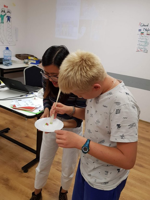 Zajęcia odbywały się w języku angielskim i były prowadzone przez wolontariuszy z różnych stron świata: Alex z Hondurasu, Sunny i Nam z Wietnamu, Natalie i Alejandro z Kolumbii, Riki z Indonezji, Pizza z Włoch, Adam z Etiopii oraz wielu innych. Uczniowie mieli okazję dowiedzieć się wielu ciekawych rzeczy o różnych kulturach, tradycjach, a nawet zatańczyć narodowe tańce czy nauczyć się popularnych zwrotów językowych.