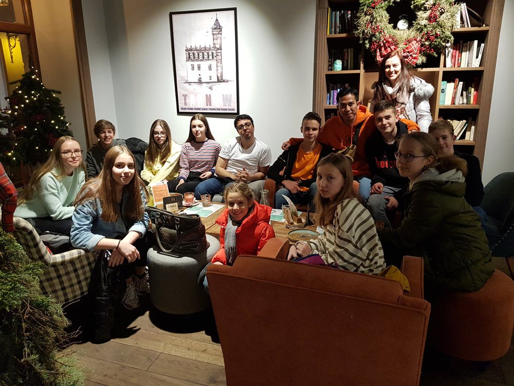 Po południu zabraliśmy naszych gości na krótki spacer po Tarnowie, podczas którego pokazaliśmy im najciekawsze miejsca, zwłaszcza te związane z II wojną światową. Wolontariusze byli niezwykle zaciekawieni, a Roberto wyznał, iż właśnie dla lepszego poznania polskiej historii przyjechał do naszego kraju. Następnie uczniowie mieli okazję na swobodną rozmowę w przytulnej kawiarni, gdzie wszelkie bariery językowe zniknęły. Czas upłynął szybko w bardzo miłej atmosferze.