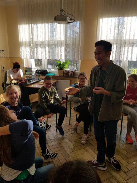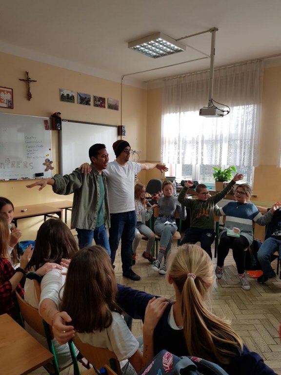 Podczas tej wizyty, Ricky i Roberto prowadzili zajęcia w klasach 5 - 8 euro. Podczas tych spotkań uczniowie brali udział w różnych grach, zabawach, przygotowywali skecze, a także mieli okazję dowiedzieć się mnóstwa ciekawych rzeczy dotyczących Indonezji i Kolumbii.