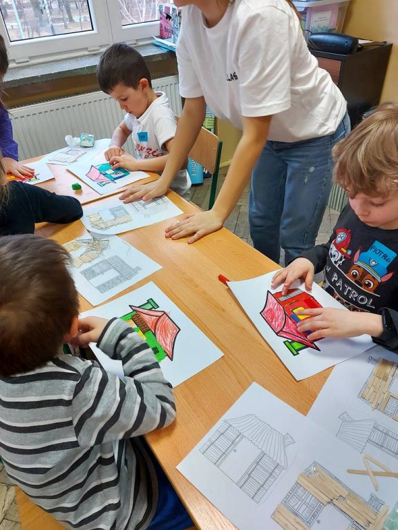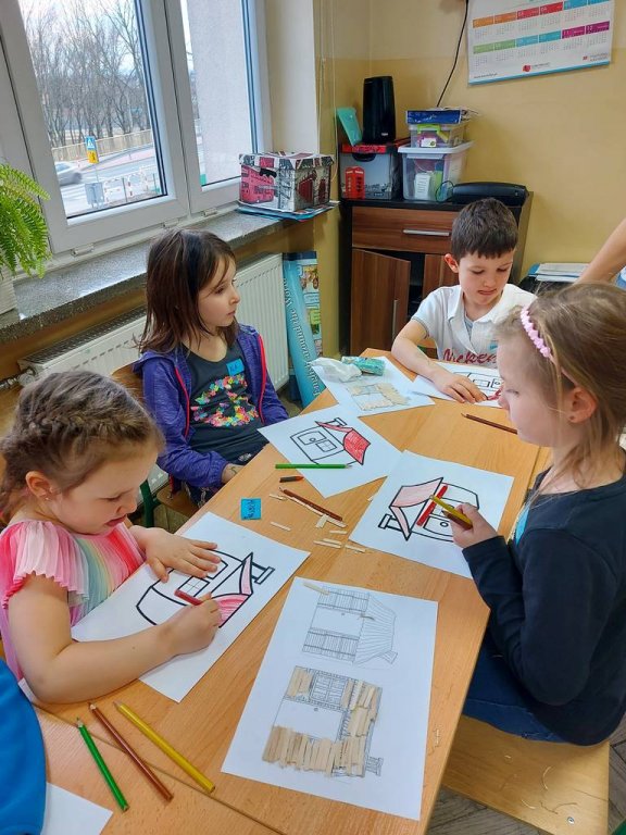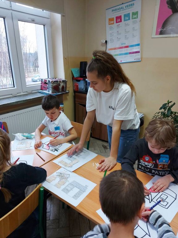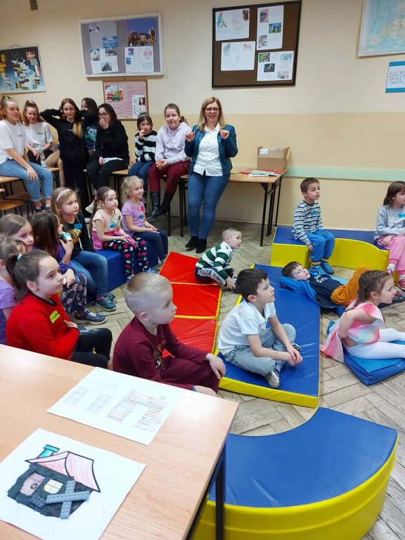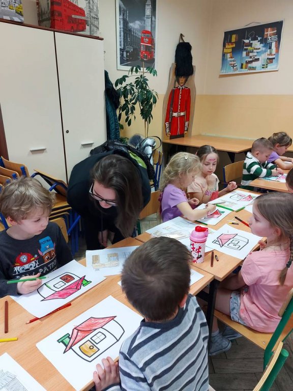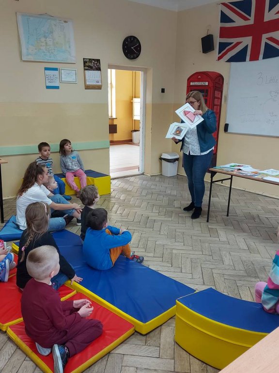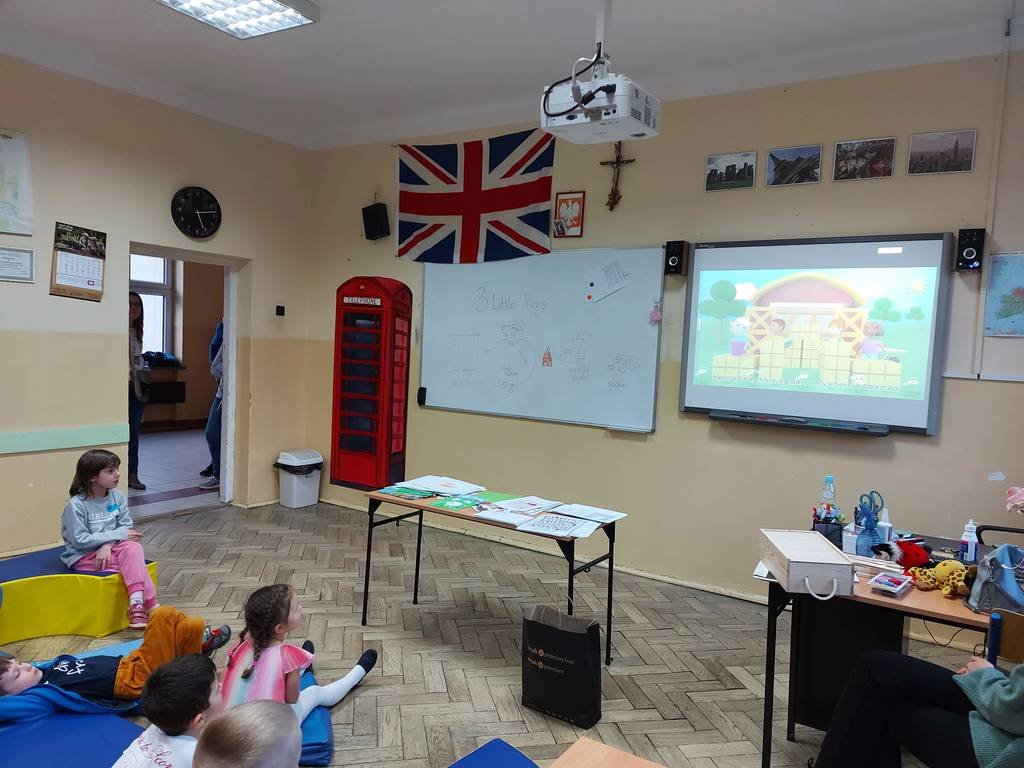 Tematem przewodnim była znana bajka „Three Little Pigs”. Dzieci wysłuchały bajki po angielsku, poznały kluczowe słowa a także sprawdziły swoją wiedzę grając w grę „I spy with my little eye...” Następnie wykonały domki świnek ze słomy, patyczków i klocków oraz pokolorowały domki wg instrukcji po angielsku. Ponadto przedszkolaki wykazały się niezwykłą znajomością nazw zwierząt i odgłosów po angielsku i zaśpiewały wspólnie piosenkę „Old Macdonald had a farm”.