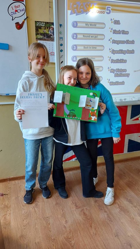 Chociaz daleko jeszcze do wakacji, klasa 5 euro przygotowywała przez ostatnie lekcje projekt i ofertę wymarzonego domku,który mogliby wynająć turystom z całego świata, a zwłaszcza swojej Pani z angielskiego.