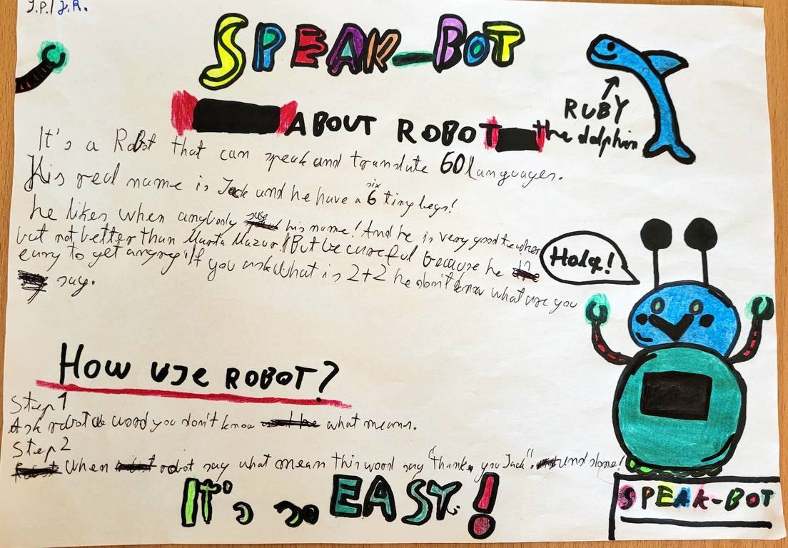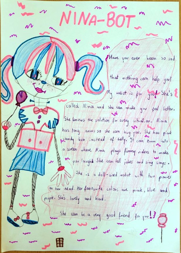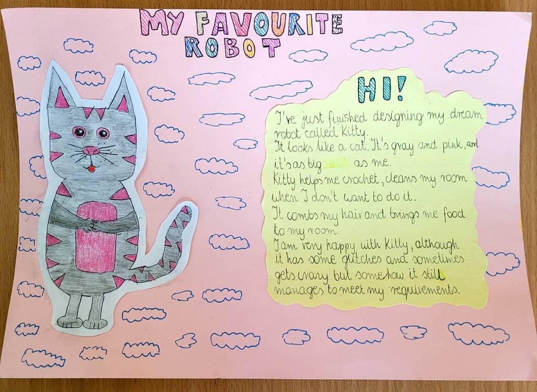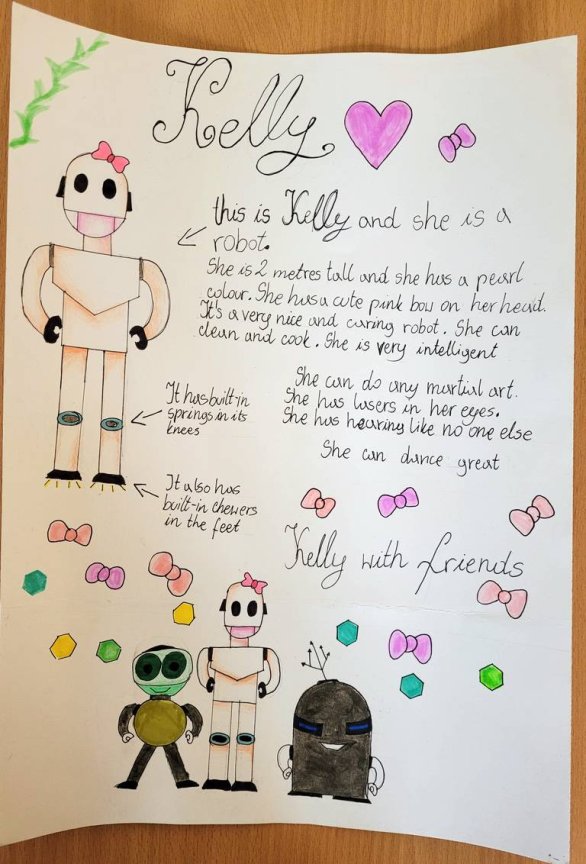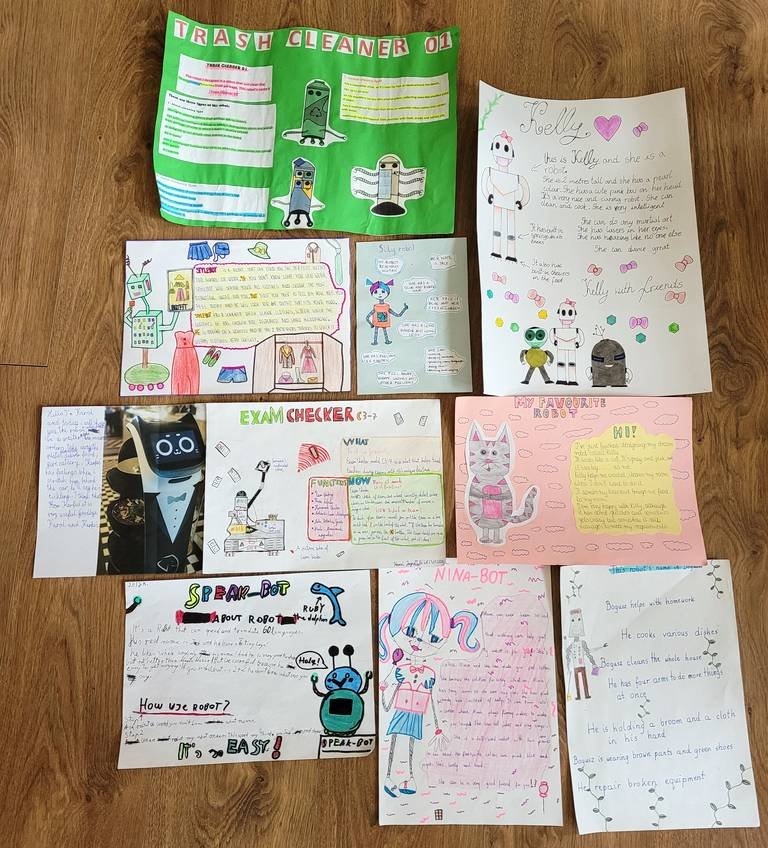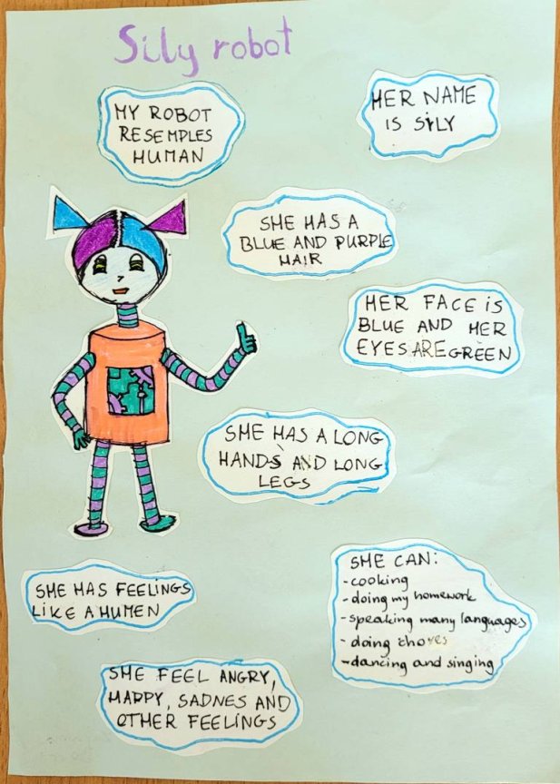 Uczniowie klasy 6 euro mieli niezwykłe zadanie zaprojektowania robota marzeń. Musieli wymyśleć dla niego/niej imię, opisać wygląd oraz podstawowe funkcje.