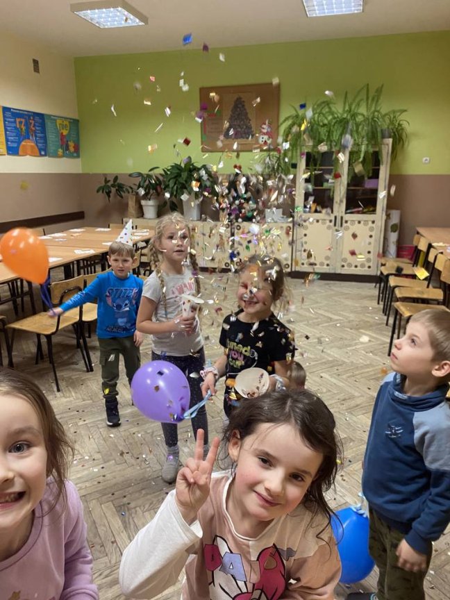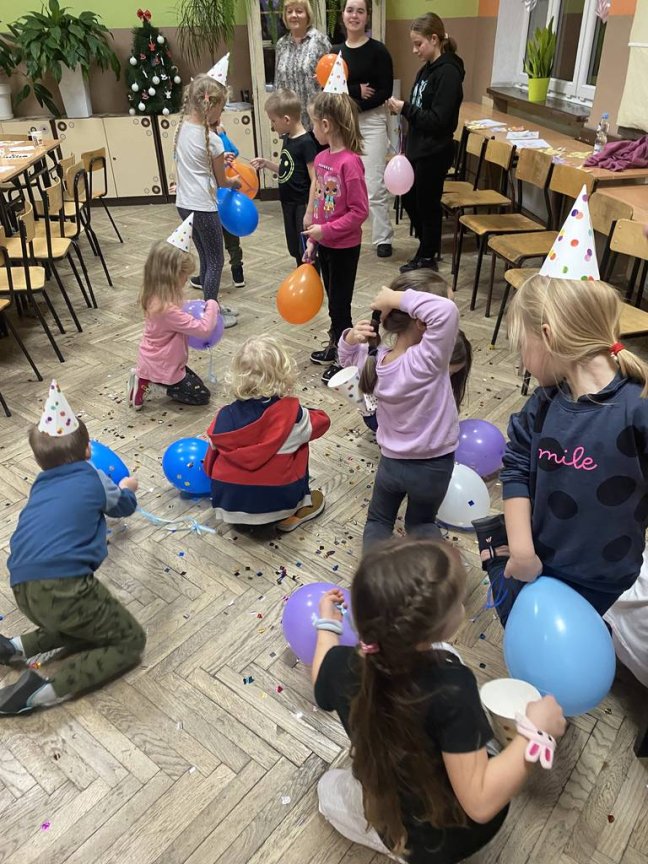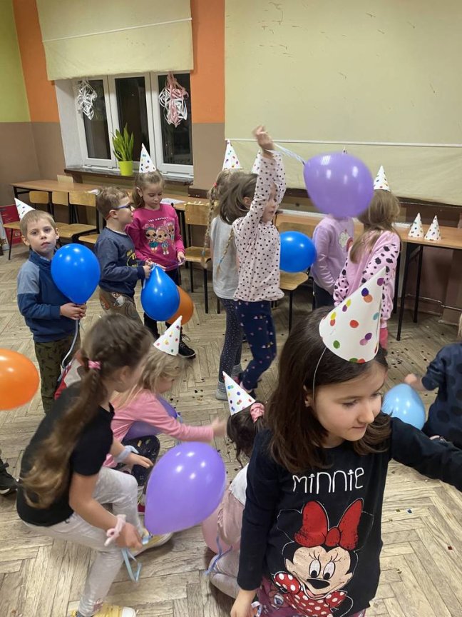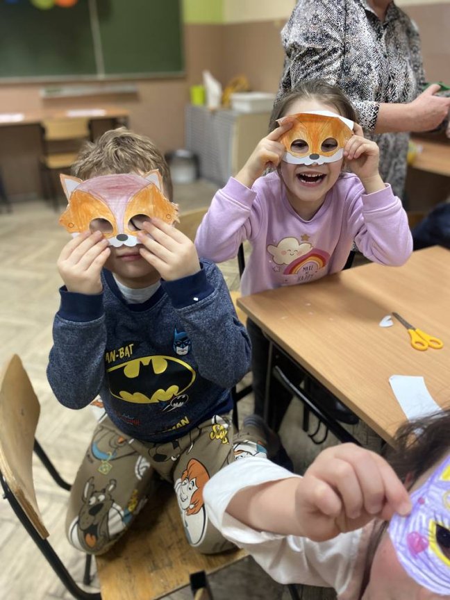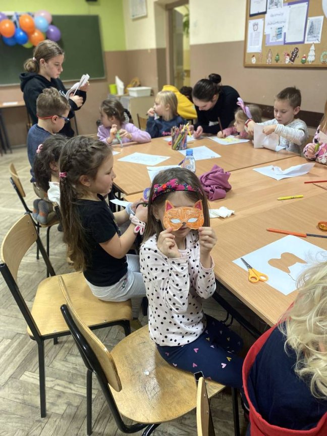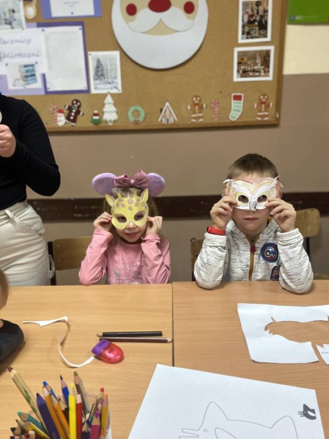 Przesympatyczne przedszkolaki, które regularnie już odwiedzają naszą szkołę, tym razem podczas zajęć poszerzyły swoją wiedzę na temat karnawału. Dzieci wykonały również karnawałowe maski, odgadywały zagadki oraz wzięły udział w zabawie. Kolorowe balony, czapeczki, błyszczące konfetti stanowiły doskonałą oprawę naszego szkolnego karnawału. Było niezwykle sympatycznie i radośnie. Zajęcia prowadziły panie: Jolanta Wierzchowiec i Laura Wojtarowicz.