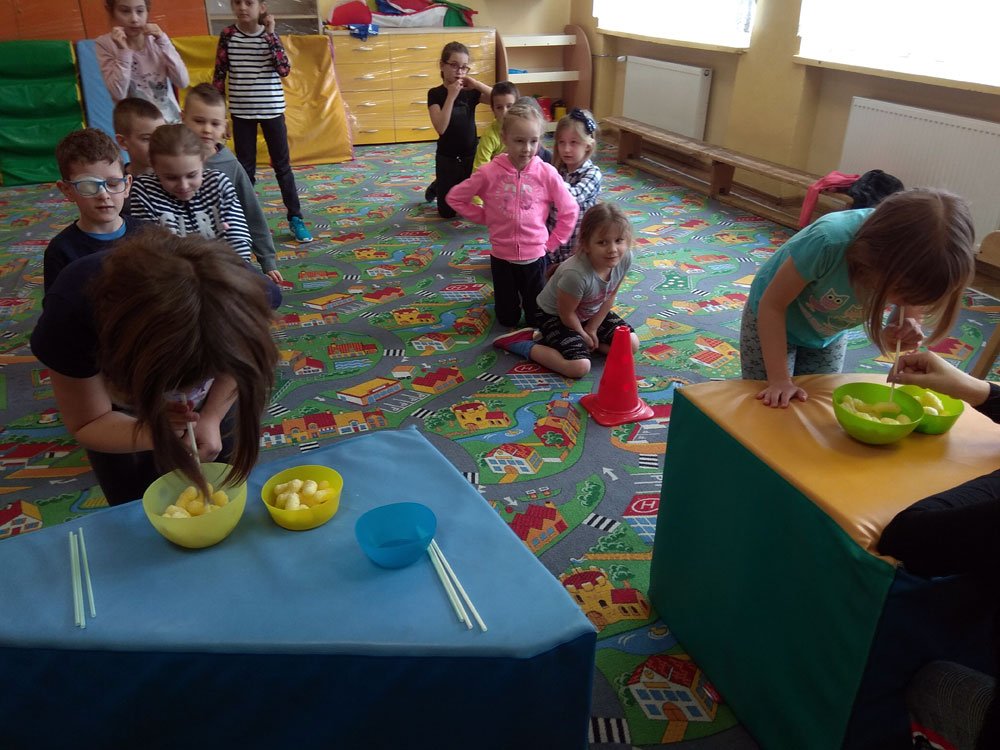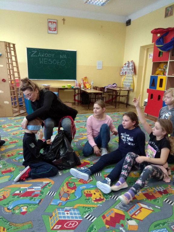 Jak ćwiczyć współpracę w grupie i pozytywną rywalizację? Jak rozwijać wytrwałość i cierpliwość? Jak usprawnić koordynację wzrokowo – ruchową, orientację w przestrzeni i spostrzegawczość? Jak zrobić to wszystko w ciekawy i atrakcyjny dla dzieci sposób? Na te pytania starały się odpowiedzieć pani psycholog Kinga Słowik i pani logopeda Monika Dziecina, które zorganizowały w naszej szkole „Zawody na wesoło”. Uczniowie klas I – III brali udział w ciekawych i zabawnych konkurencjach, które służyły nie tylko dobrej zabawie, ale także nauce.