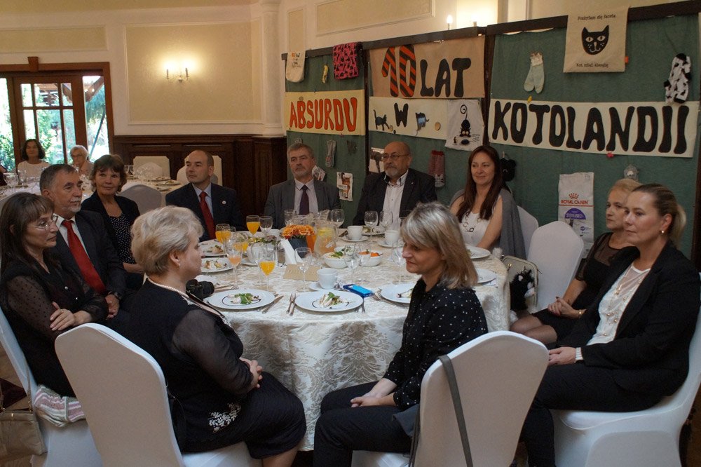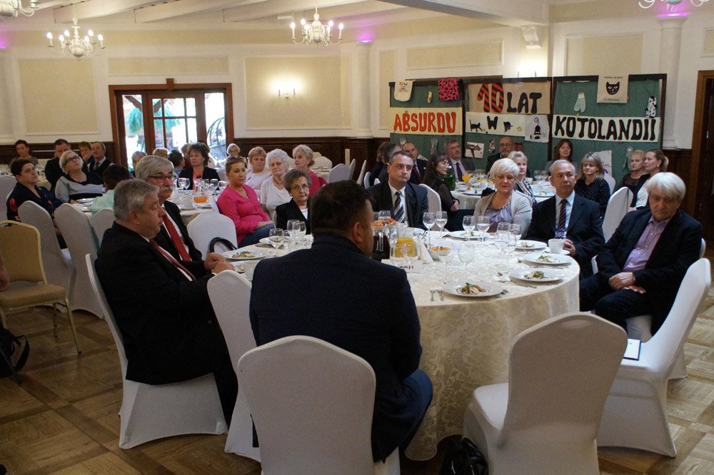 Dyrektor oraz Rada Rodziców wyrazili wdzięczność pedagogom za pełną zaangażowania pracę z dziećmi i młodzieżą. Spotkanie uświetnił występ kabaretu Absurd, który bawi fanów dobrej rozrywki w „szkolnym klimacie” już od dekady. Dziesięciolecie stało się doskonałą okazją, by oficjalnie podziękować jego pomysłodawczyni i założycielce - długoletniej polonistce naszej Szkoły - mgr Agnieszce Kowalskiej- Raszce. Spotkanie zakończyła degustacja smacznych potraw.