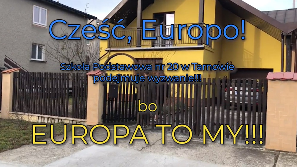- happening w którym uczestniczyć będzie cała społeczność szkolna w dniu 13.03.2020r. pod hasłem: „Jestem Europejczykiem” – w tym dniu do szkoły przychodzimy ubrani na żółto i niebiesko, hasło happeningu w jednym z 24 języków UE umieszczamy na koszulce, na jednej z lekcji spotykamy się na sali sportowej lub przed budyniem szkoły (w zależności od pogody), by głośno wykrzyczeć, że każdy z nas jest Europejczykiem oraz zostawić swój podpis na mapie Europy.