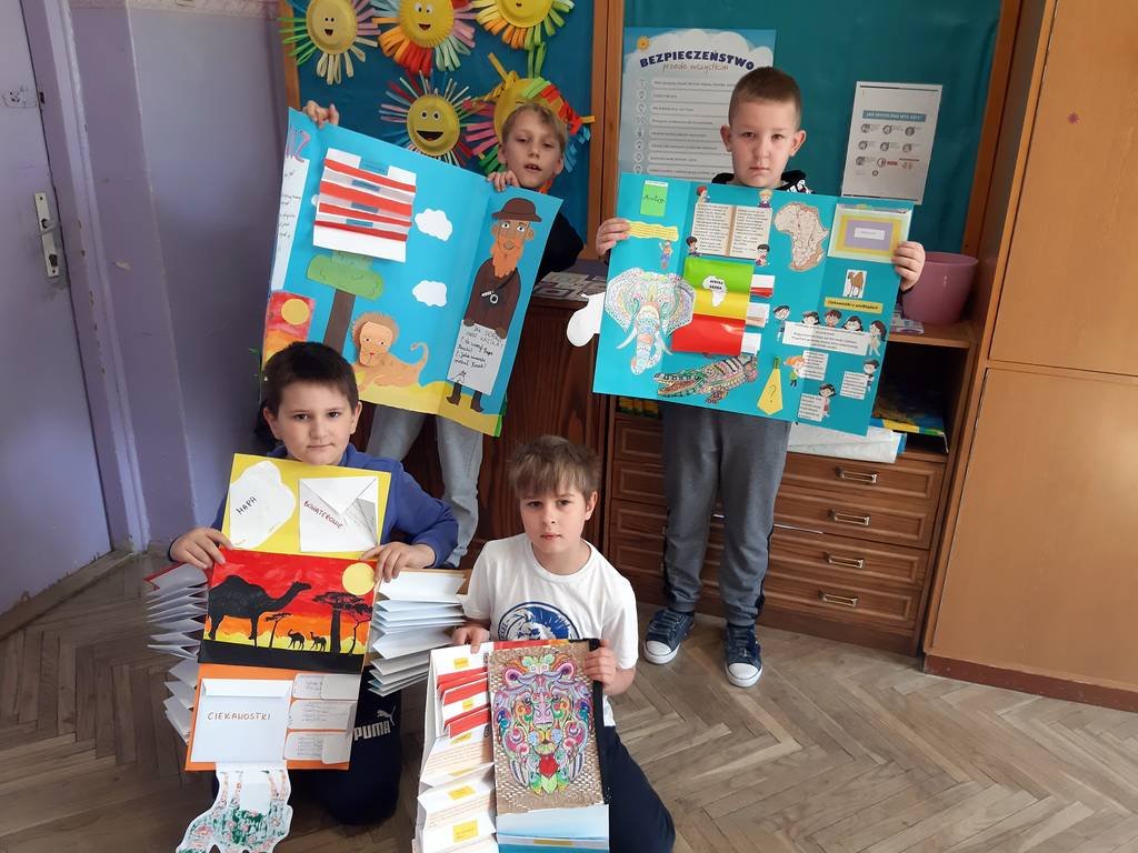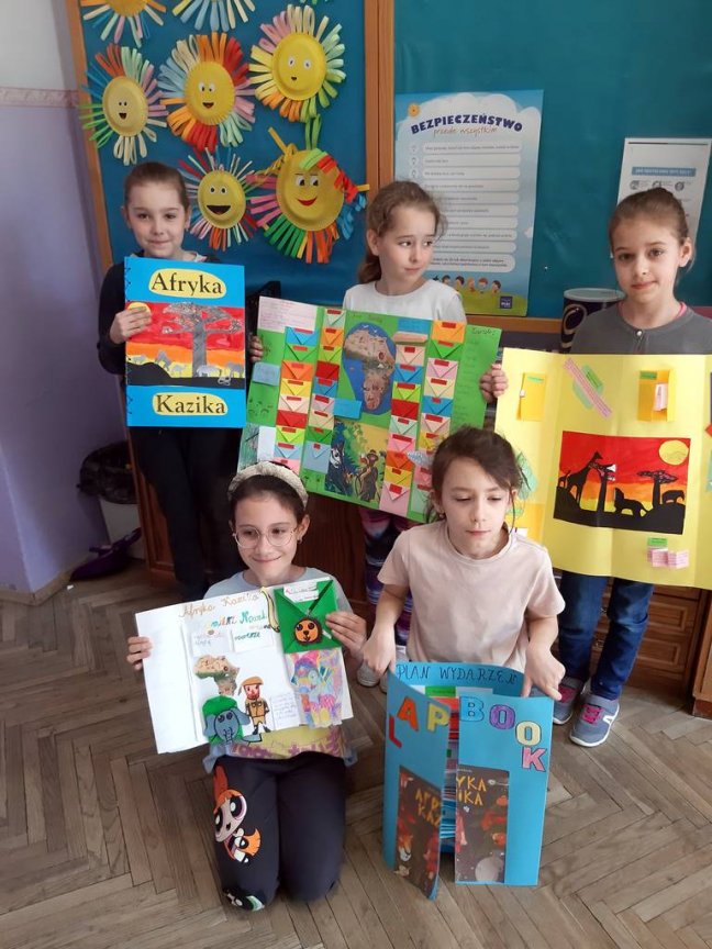 Uczniowie z klasy 2a po przeczytaniu i omówieniu lektury napisanej przez Łukasza Wierzbickiego pt.„Afryka Kazika” oraz zebraniu potrzebnych materiałów podczas zajęć lekcyjnych podjęli próbę opracowania w domu LAPBOOKA.