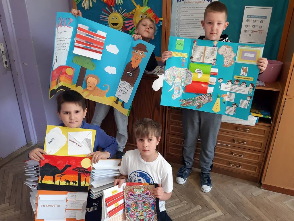 Trzeba przyznać, że uczniowie wykazali się ogromną pomysłowością i kreatywnością. Ich lapbooki były kolorowe, zawierały rysunki przedstawiające bohaterów książek, zdjęcia, opisy miejsc, plany wydarzeń. To wszystko umieszczone zostało w książeczkach, kopertach, kieszonkach i na karteczkach o przeróżnym kształcie i kolorze. Dzięki lapbookom uczniowie rozwijają różne umiejętności, uczą się samodzielności, porządkują i pogłębiają wiedzę. To również wspaniały sposób na spędzenie wolnego czasu. A co najważniejsze to idealny sposób na naukę. Każdy uczeń otrzymał pamiątkowy dyplom i batona, a ośmiu dodatkową nagrodę.