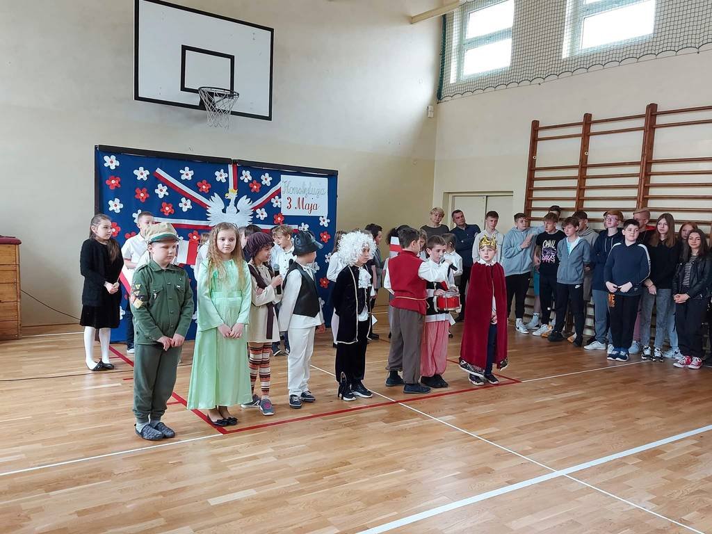 Chcąc przybliżyć uczniom naszej szkoły to ważne wydarzenie z historii naszego kraju, klasa II a z panią Martą przygotowała montaż słowno-muzyczny. Była to okazja do refleksji nad tymi ważnymi wydarzeniami , do pielęgnowania patriotyzmu wśród ucznióworaz do przeżycia dumy z tego, że jest się Polakiem.Uczniowie w pięknych strojach recytowali wiersze, mówiące o tych wydarzeniach, o miłości do Ojczyzny i o Konstytucji. Wiersze były przeplatane piosenkami : „Witaj, majowa jutrzenko…”, „Polonez Trzeciego Maja” itp. Dzięki tej akademii, data 3 Maja 1791 roku pozostanie dla uczniów datą znaczącą. Świat idzie z postępem: komputer, Internet, nowoczesne technologie, ale historia naszego narodu to skarb, który każdy Polak powinien nosić w sercu!