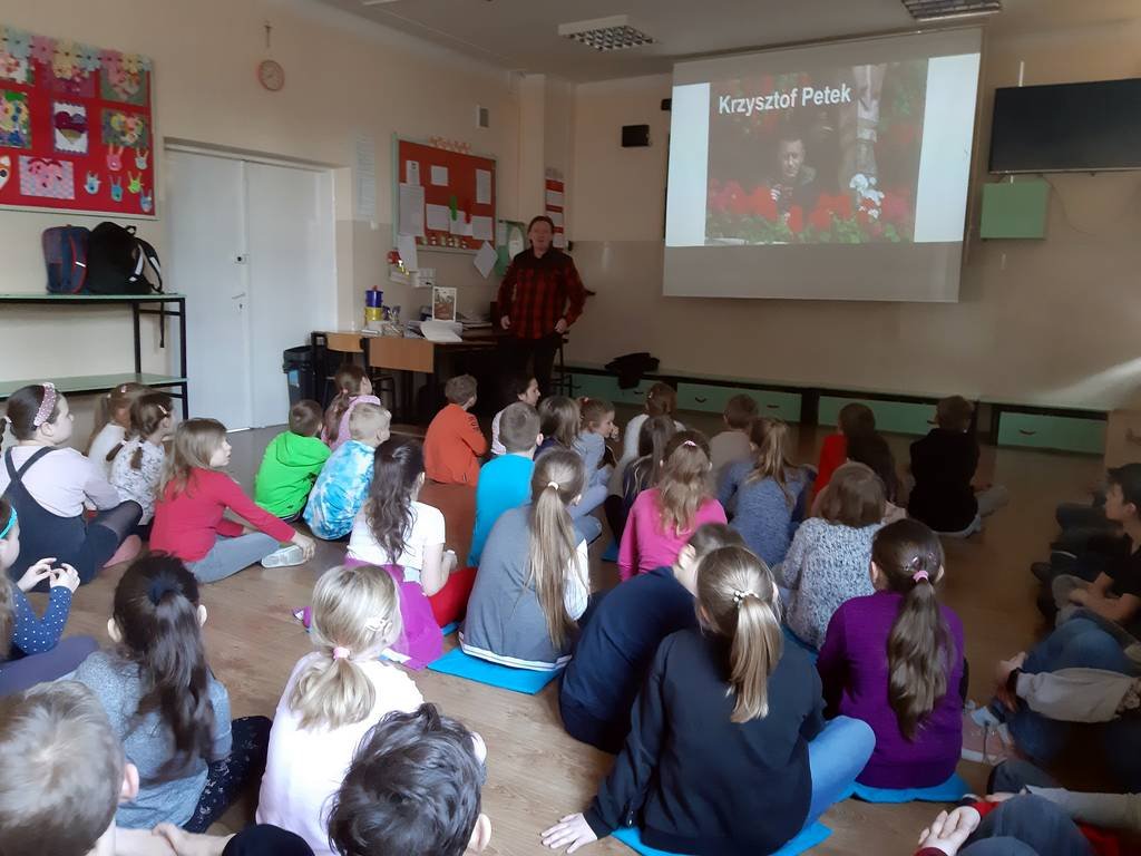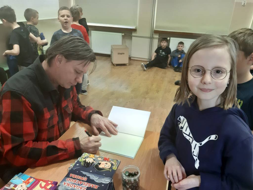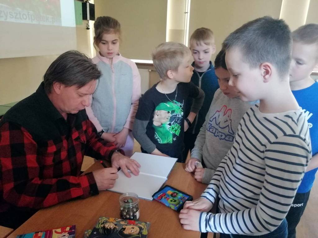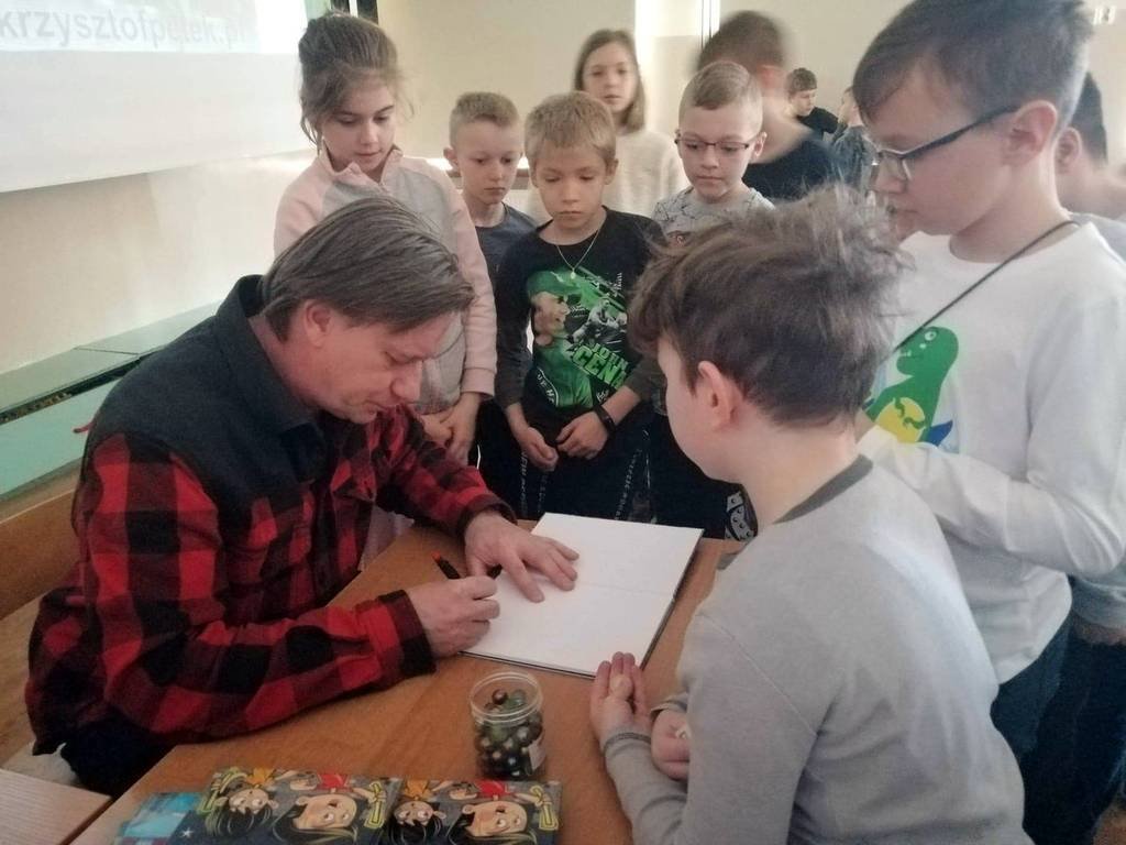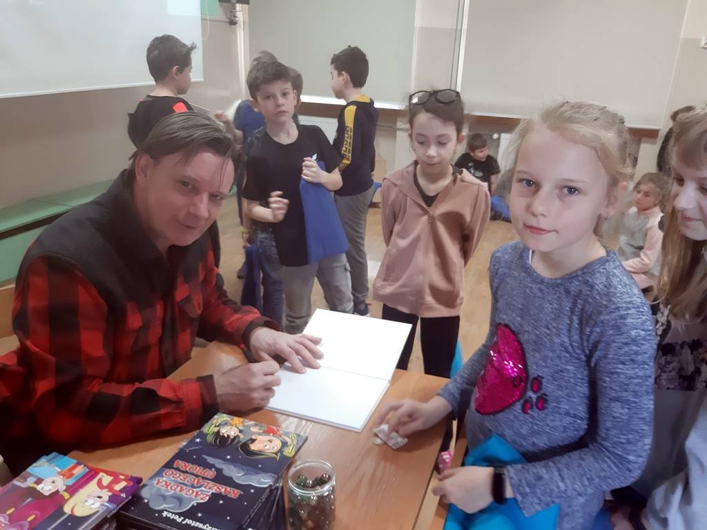 Przekonali się o tym 8 kwietnia uczniowie klas I – III, ponieważ w tym dniu autor odwiedził naszą szkołę. Zaproszony Gość bardzo szybko nawiązał kontakt z młodymi czytelnikami. Na koniec spotkania można było kupić książki napisane przez Pana Krzysztofa wraz z jego autografem.