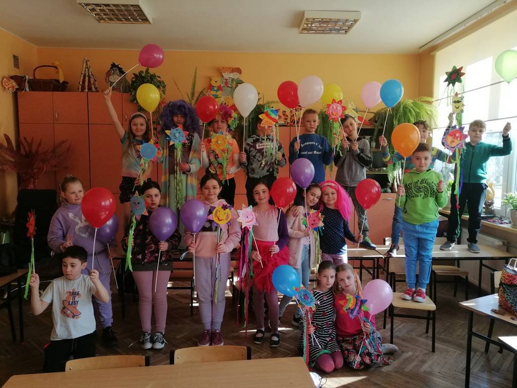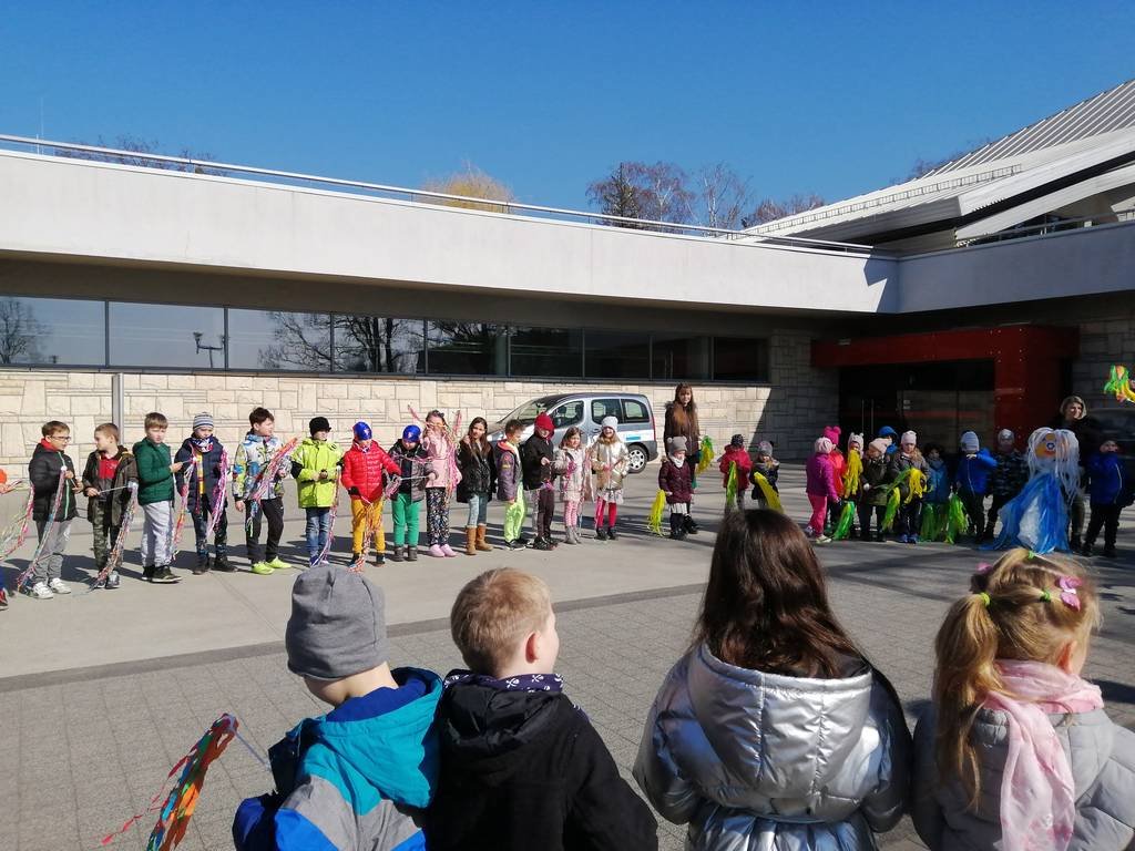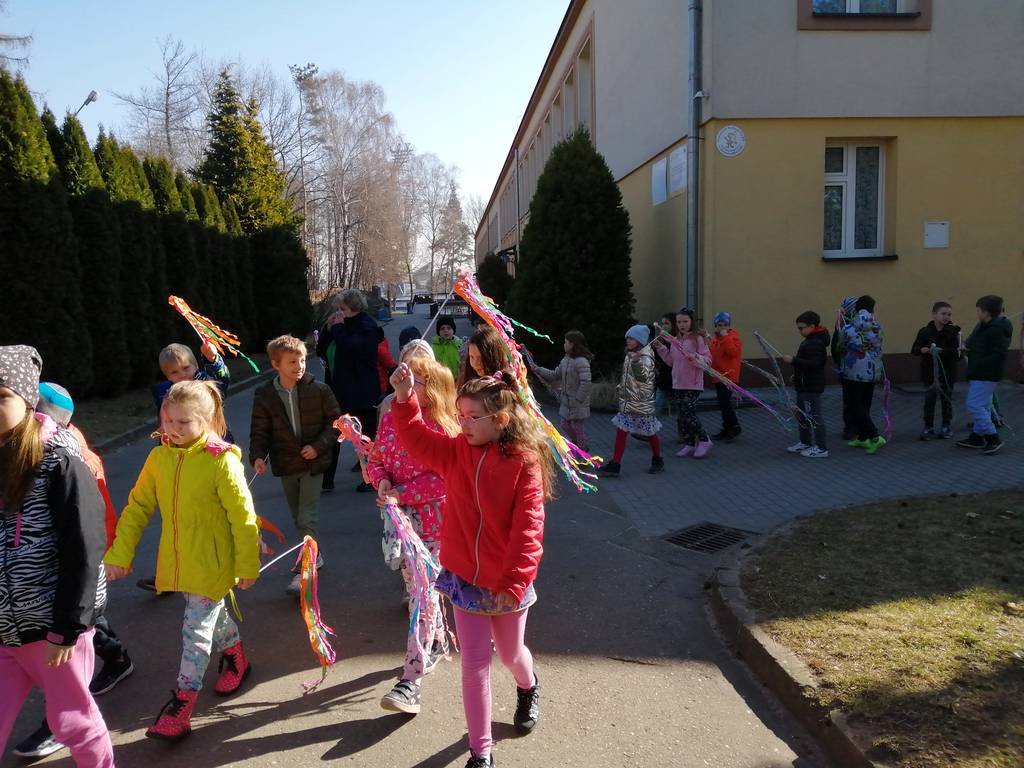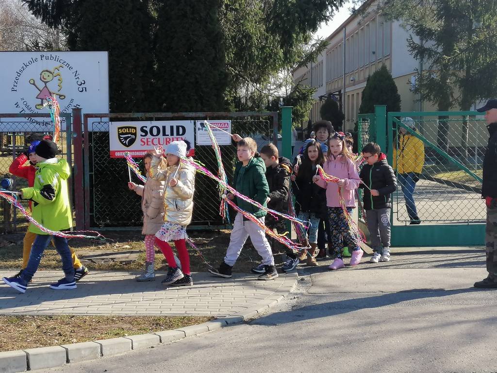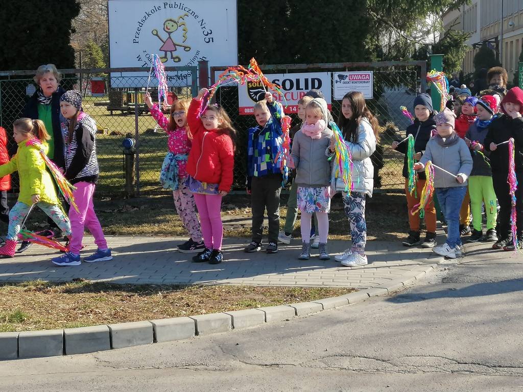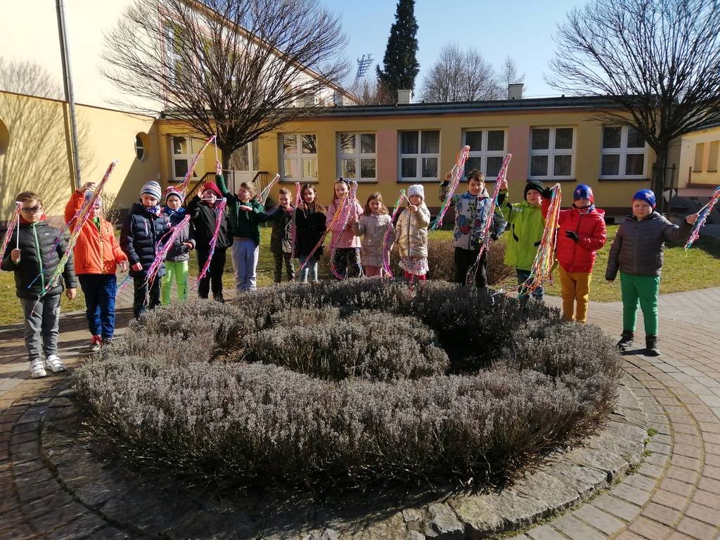 21 marca uczniowie klas 1-3 oraz przedszkolaki z zaprzyjaźnionych Przedszkoli nr 33 i 35 wraz z wychowawcami przywitali kalendarzową wiosnę.