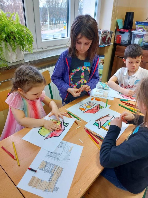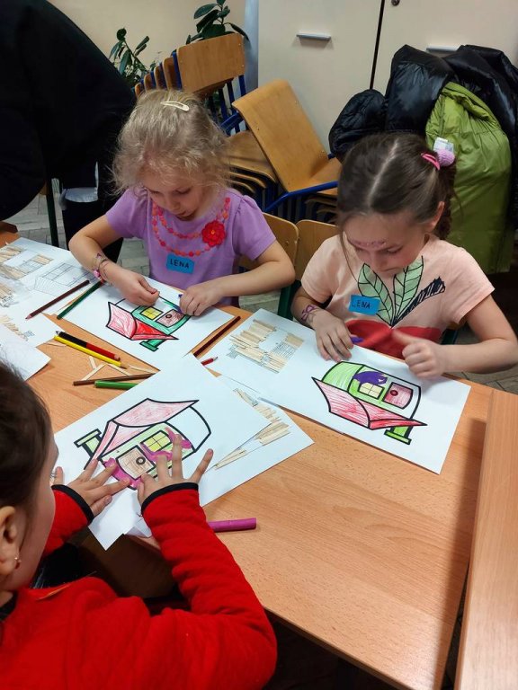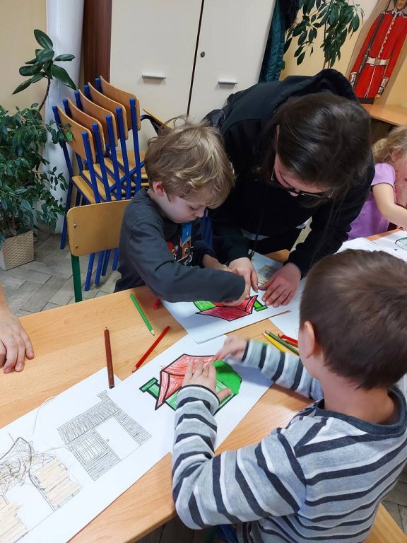 Tematem przewodnim była znana bajka „Three Little Pigs”. Dzieci wysłuchały bajki po angielsku, poznały kluczowe słowa a także sprawdziły swoją wiedzę grając w grę „I spy with my little eye...”  Następnie wykonały domki świnek ze słomy,  patyczków i klocków oraz pokolorowały domki wg instrukcji po angielsku. Ponadto przedszkolaki wykazały się niezwykłą znajomością nazw zwierząt i odgłosów po angielsku i zaśpiewały wspólnie piosenkę  „Old Macdonald had a farm”.