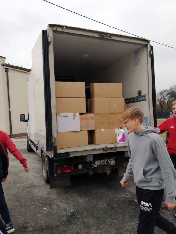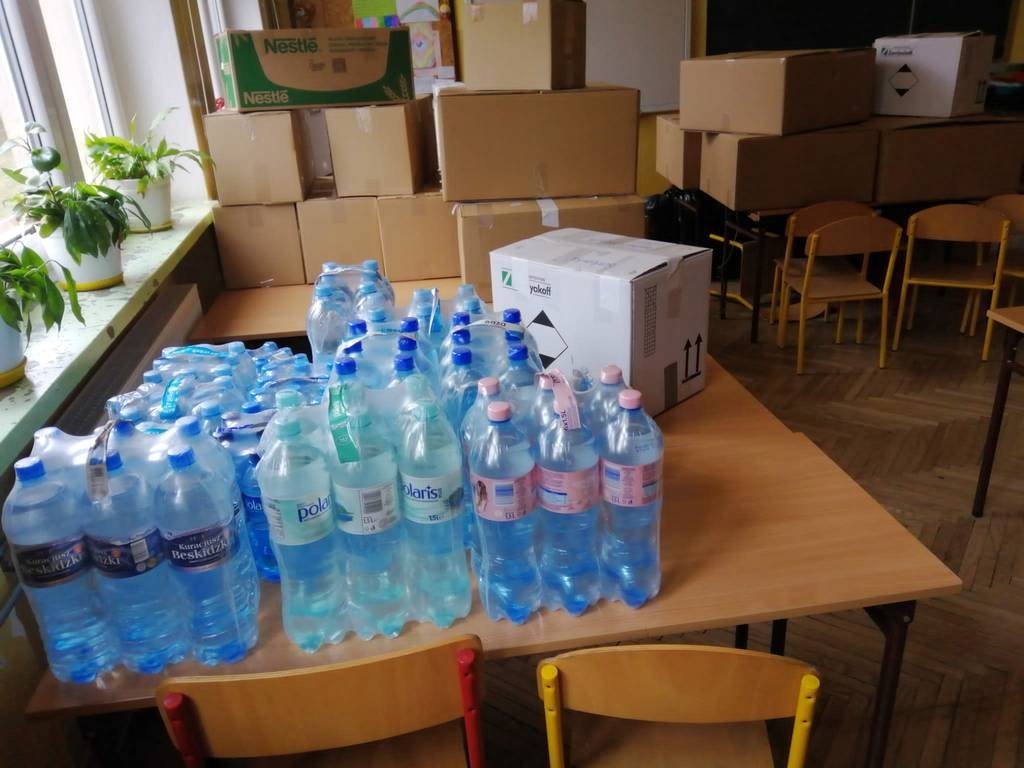 mieszkają w naszym mieście a Olaksandra uczy się w naszej szkole. W ciągu tygodnia zebraliśmy 40 dużych pudeł 20 zgrzewek mineralnej, 4 duże worki materiałów higienicznych i odzieży. Przekazane to zostało do transportu humanitarnego, który jest przygotowywany przez UM Tarnowa. Przygotowaliśmy również dary dla parafii polskiej w Brodach. SERDECZNIE DZIĘKUJĘ wszystkim darczyńcom. teraz jeszcze staramy się o pracę dla p. Oliny, tak aby mogły w sposób samodzielny i nieskrepowany mieszkać i żyć w Tarnowie.