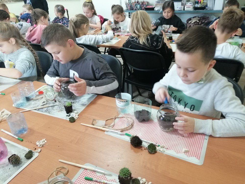 22 października klasa 3a- wych. I.Wojnarowicz -wzięła udział w warsztatach ekologicznych, zorganizowanych w Galerii „Panorama” . Podczas zajęć uczniowie dowiedzieli się ciekawych rzeczy związanych z recyklingiem, „wyławiali” z rzeki śmieci i segregowali je - do uprzednio przygotowanych pojemników. W ramach części plastycznej każde dziecko wykonało „mini – las” w słoiku.