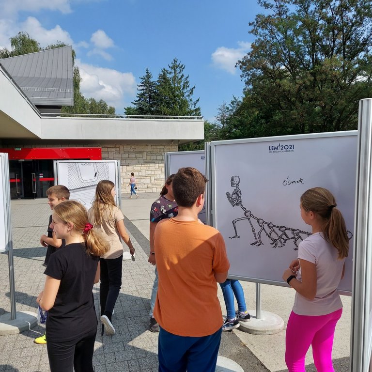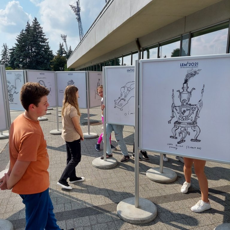 Z okazji 100. rocznicy urodzin wielkiego polskiego pisarza Stanisława Lema, Centrum Sztuki Mościce, zorganizowało we wrześniu ciekawą wystawę przybliżającą postać artysty i jego dzieła. W ramach zajęć artystycznych klasy szóste miały możliwość obejrzenia wystawy, dzięki której uczniowie poznali życie artysty oraz zapoznali się z fantastycznymi bohaterami utworów Lema.