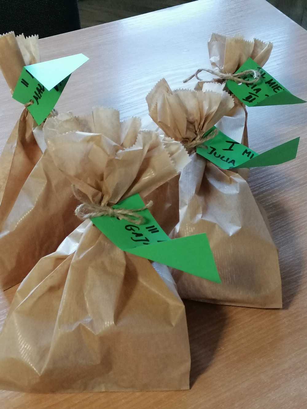 Uczniowie klasy 4a napisali na lekcji języka polskiego listy do Świętego Mikołaja. Pod nadzorem swojej nauczycielki pani Stawarz starannie spisali swoje prośby. Po sprawdzeniu poprawnego zapisu adresów, nauczycielka położyła zapakowane w koperty listy na parapet szkolny, aby w nocy mogły się udać w dalszą podróż na biegun północny.
