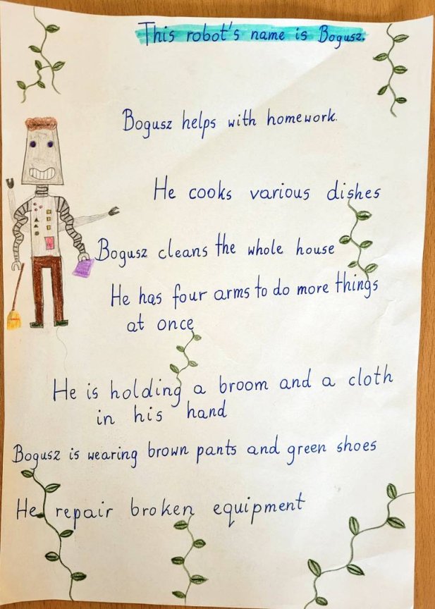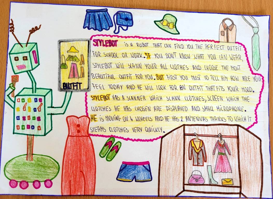 Uczniowie klasy 6 euro mieli niezwykłe zadanie zaprojektowania robota marzeń. Musieli wymyśleć dla niego/niej imię, opisać wygląd oraz podstawowe funkcje.