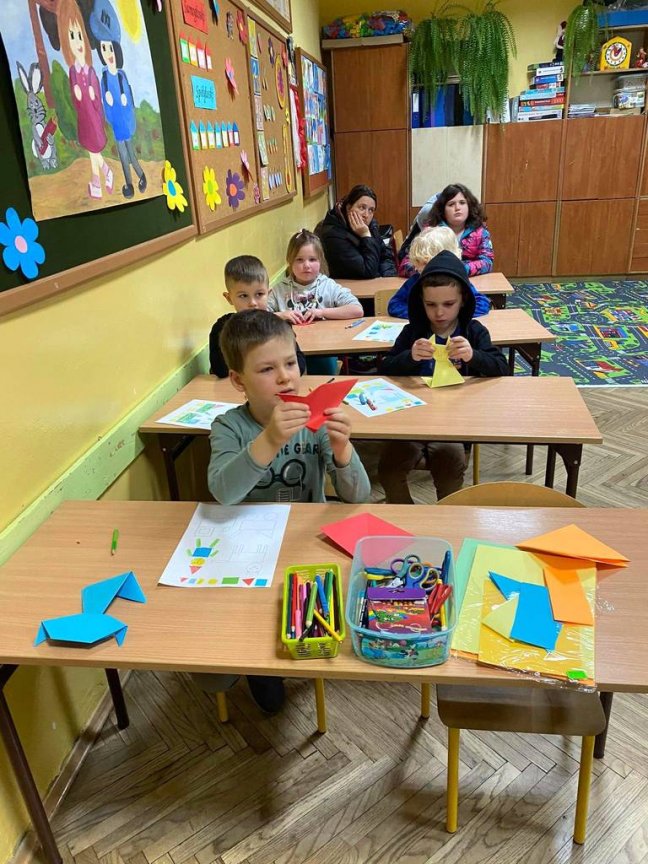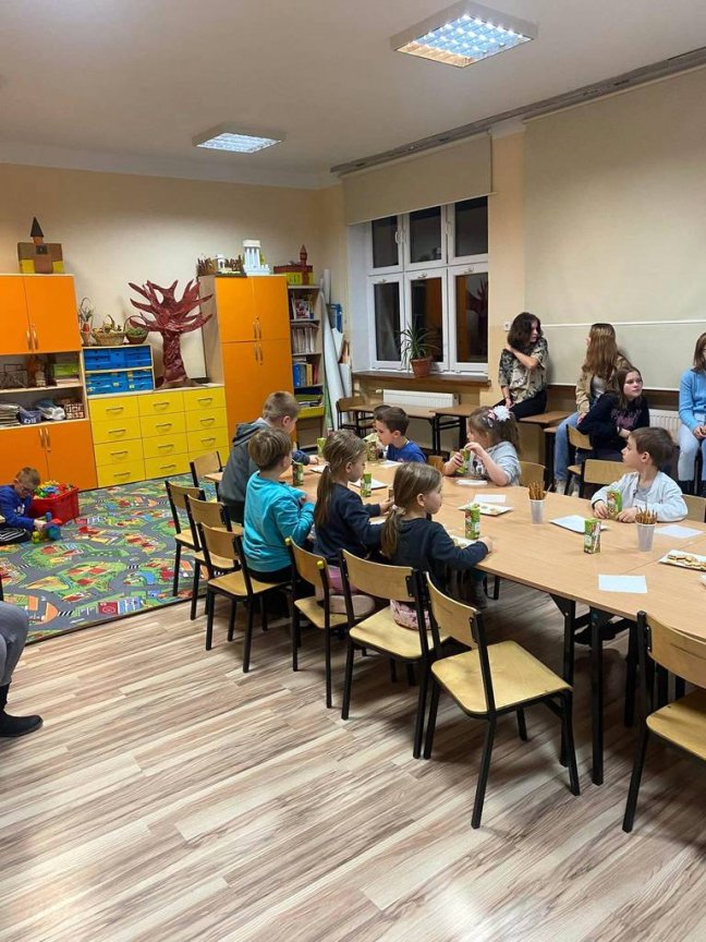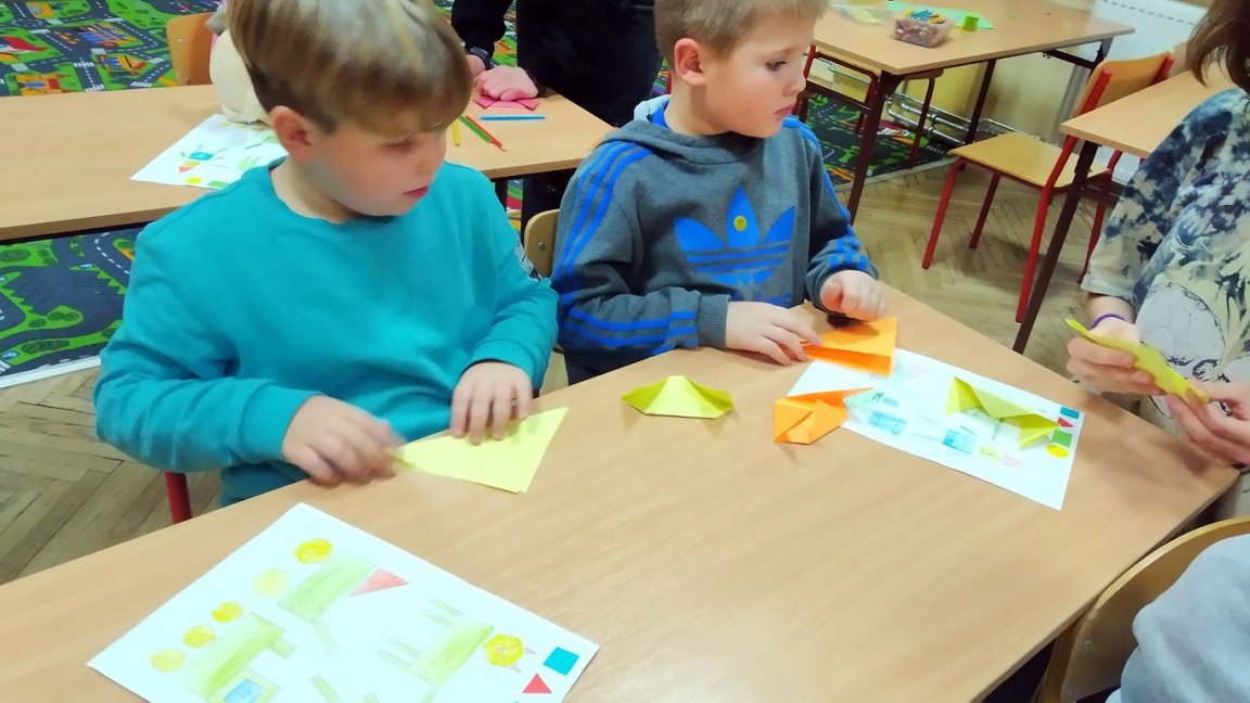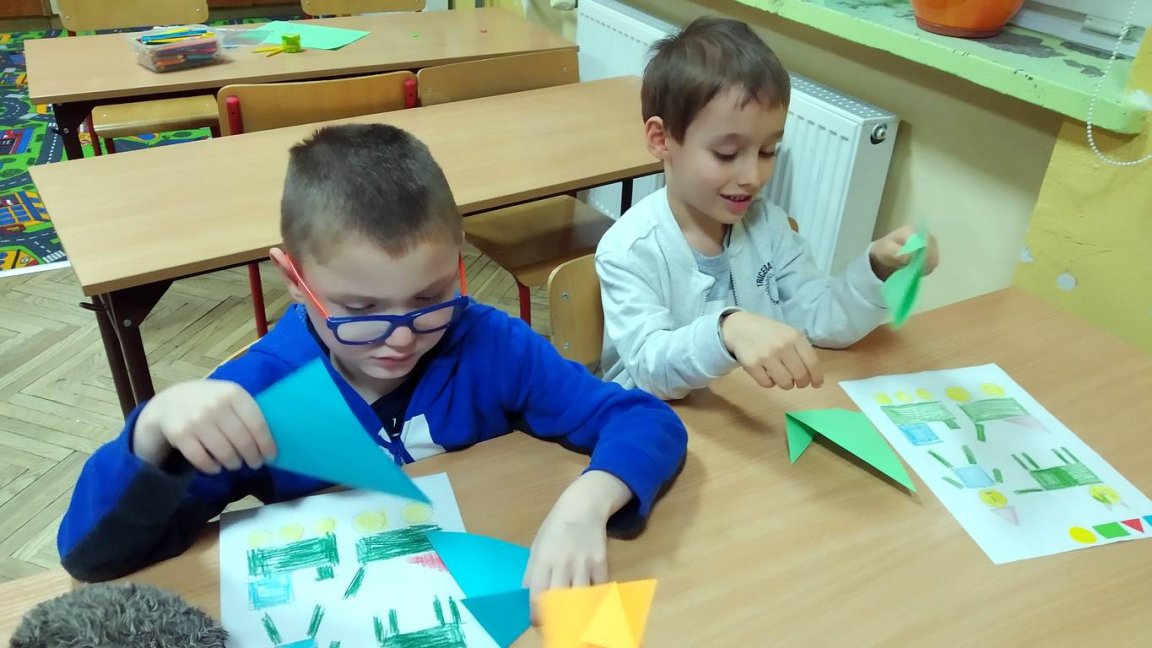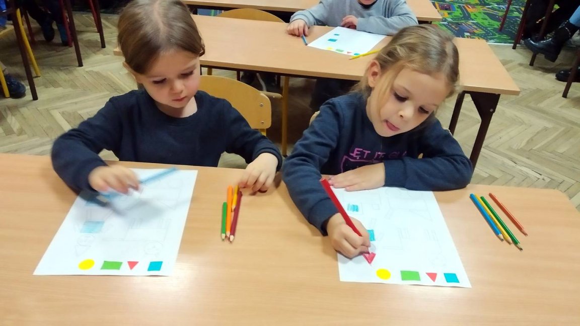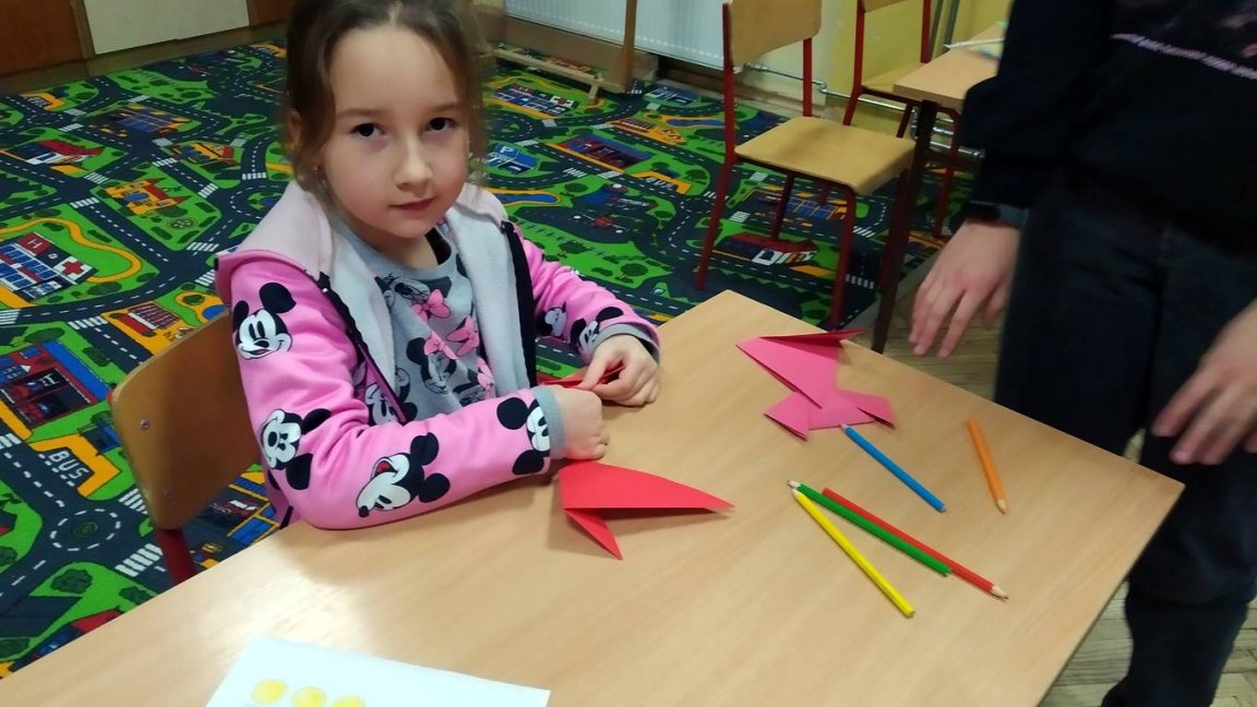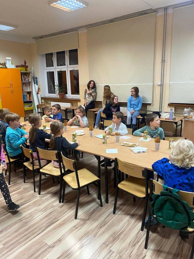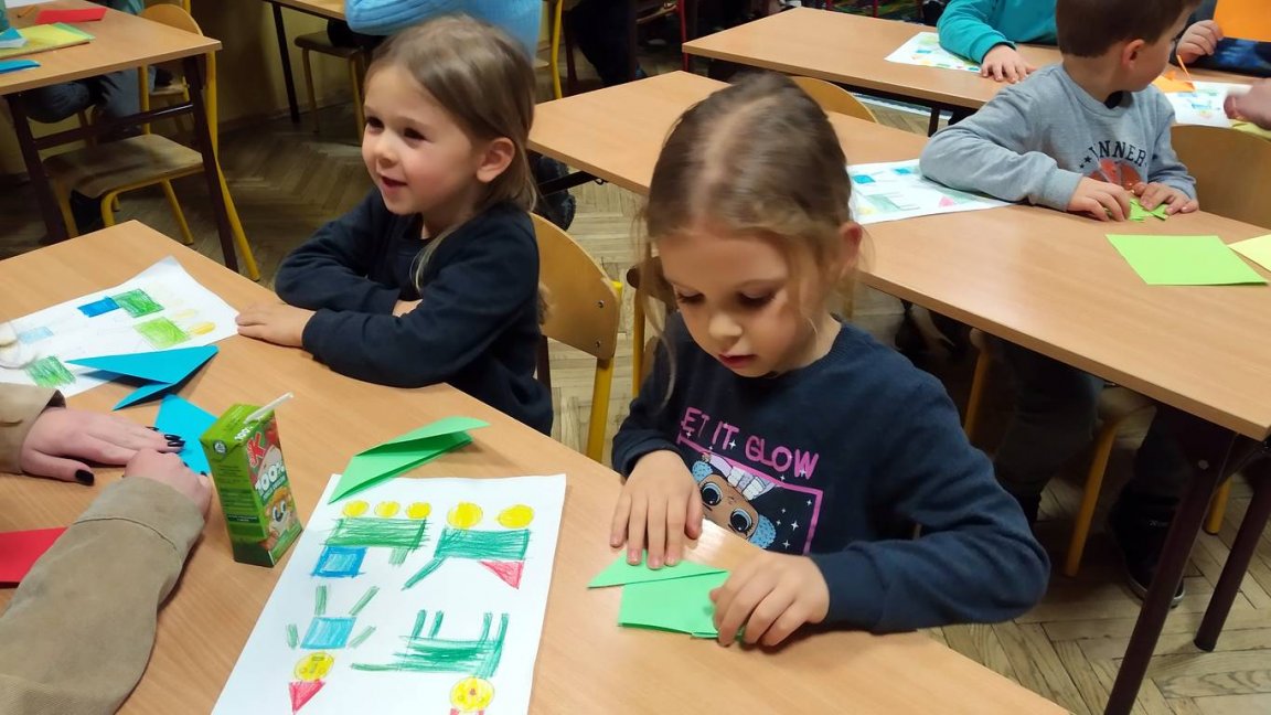 Dzieci wykonały 2 prace plastyczne związane z poznanymi figurami, m.in. kotka z origami, bawiły się w kodowanie️, a na tablicy multimedialnej sprawdzały swoją wiedzę z zakresu poznanych figur. Kręcąc interaktywnym Kołem Fortuny miały okazję poruszać się wykonując wylosowane polecenia ćwiczeń ruchowych. Wszytkie zadania dzieciaki wykonały perfekcyjnie. Pod opieką starszych kolegów i koleżanek z klasy 8c bawiliśmy się znakomicie przy znanych przedszkolakom piosenkach. Nie zabrakło również słodkiego poczęstunku. Do zobaczenia na kolejnych zajęciach.