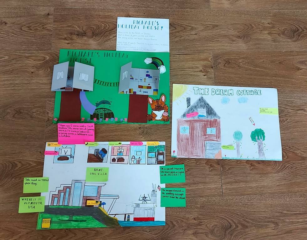 Chociaz daleko jeszcze do wakacji, klasa 5 euro przygotowywała przez ostatnie lekcje projekt i ofertę wymarzonego domku,który mogliby wynająć turystom z całego świata, a zwłaszcza swojej Pani z angielskiego.