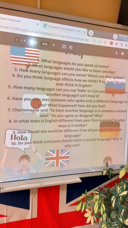 26 września obchodzimy Europejski Dzień Języków. Z tej okazji klasa 8 a i c euro obejrzała krótki film "How language shapes the way we think" Lera Boroditsky na ted.com, przeprowadziła dyskusję na ten temat oraz nauczyła się paru zwrotów w różnych językach.