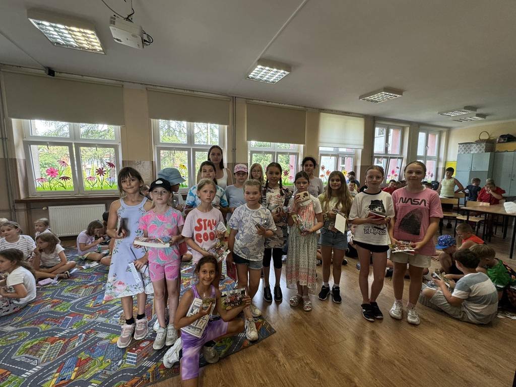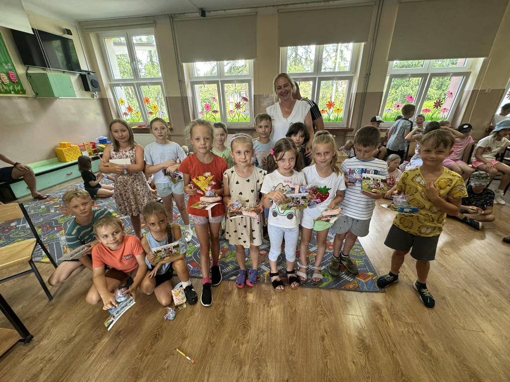 Po powrocie uczestnicy mogli dokończyć ulubioną zabawę Baloniadę. Natomiast po obiedzie nastąpiło podsumowanie półkolonii: rozdanie pamiątkowych zdjęć i nagród za udział w konkursach, każdy otrzymał upominek oraz mnóstwo słodkości. Wszystkim uczestnikom półkolonii życzymy udanych wakacji. Zapraszamy do NAS za rok. Napiszcie na naszym facebooku „ Jak Wam minął czas?”
