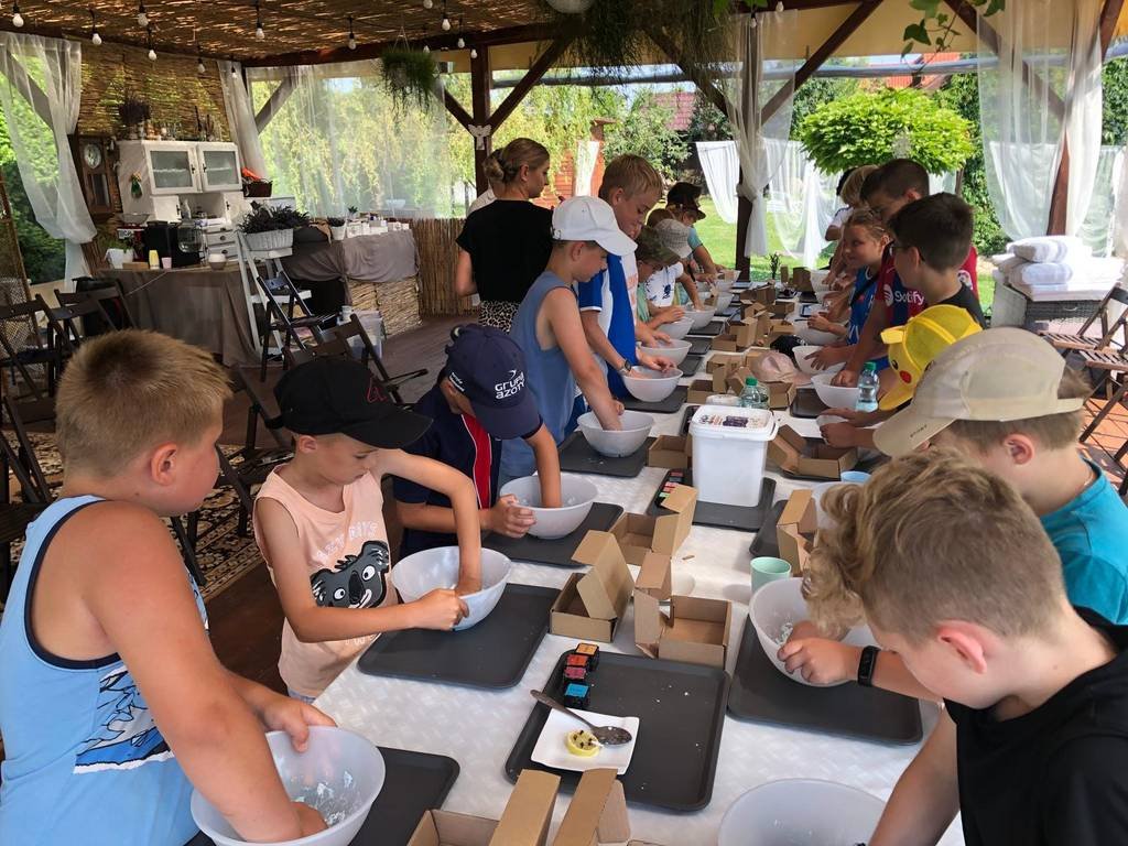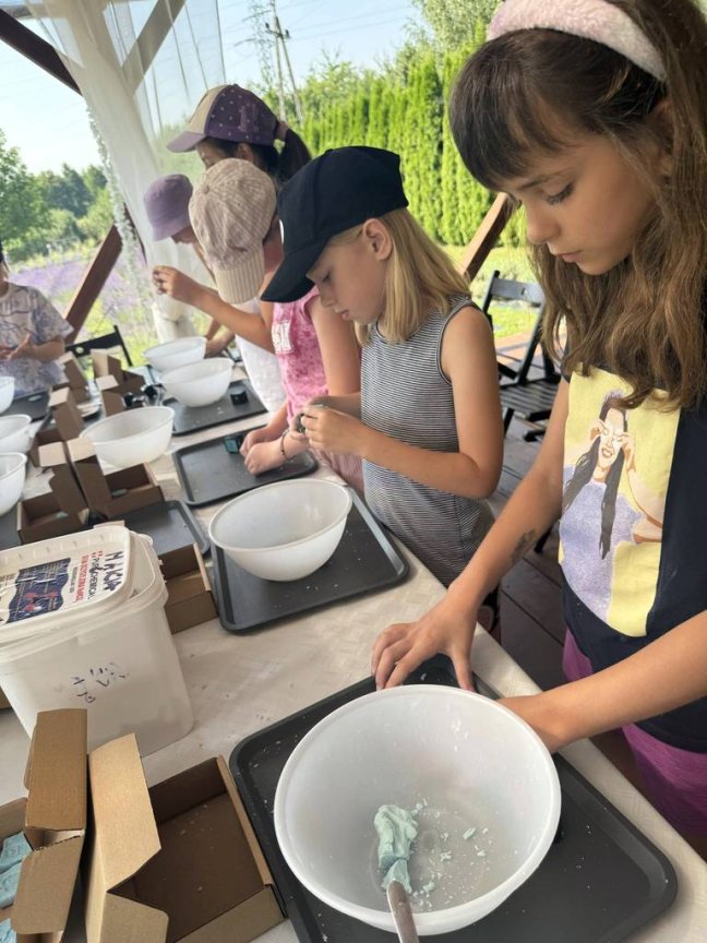 Po profesjonalnej rozgrzewce pod okiem instruktora, uczniowie korzystali z szeregu atrakcji. W ogromie atrakcji na dużej powierzchni, każdy znalazł coś dla dla siebie. Najważniejsze, że było dużo ruchu, śmiechu i dobrej zabawy. Natomiast grupy starsze udały się do Lawendowego Zagonka w Tarnowie, miejsca które przesiąknięte jest zapachem lawendy i niezwykle wyjątkowym klimatem. Podczas warsztatów nasi uczestnicy mieli okazję poznać lawendę wszystkimi zmysłami: dotykiem, smakiem, wzrokiem i węchem. Odbyły się również warsztaty pt. „ Naturalne mydełko lawendowe”.
