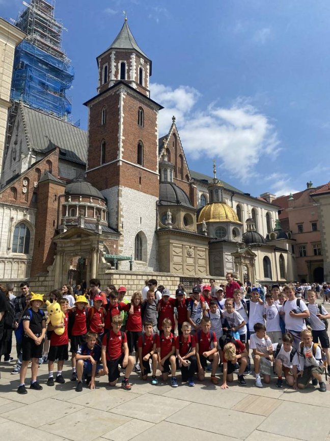 z zaprzyjaźnionej szkoły w Veszprem - pojechała do Krakowa na rodzinny piknik „Urodziny Jadwigi”. Po dotarciu na Wawel pierwszą atrakcją była jaskinia pod wapiennym wzgórzem, zwana Smoczą Jamą. Uczniowie ochoczo robili sobie zdjęcia z ziejącym ogniem legendarnym smokiem. Uroczystości urodzinowe Królowej rozpoczął występ Baletu Dworskiego „Cracovia Danza”. Następnie wspólnie z p. konsulem Węgier dr. Tiborem Gerencsérem uczestnicy wycieczki udali się w korowodzie do Ogrodów Seminarium Duchownego, gdzie czekało na nich sporo atrakcji. Były liczne zabawy, smaczne przekąski, pyszna węgierska kuchnia i urodzinowy tort. Po uroczystym świętowaniu przyszedł czas na zwiedzanie z przewodnikiem przepięknej Królewskiej Katedry na Wawelu oraz spacer Drogą Królewską – wzdłuż której znajdują się najważniejsze zabytki starego Krakowa - a także zakup pamiątek na urokliwym krakowskim Rynku. Przepiękna, słoneczna pogoda towarzyszyła wycieczkowiczom przez cały wyjazd.