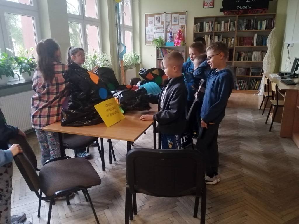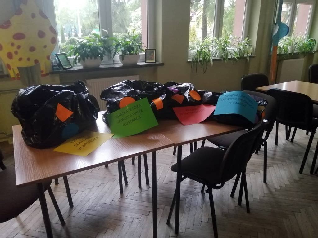 16 kwietnia biblioteka zaproponowała uczniom z klas 1-4 zabawę w loterię. Zabawa polegała na wylosowaniu spośród czterech kategorii książek z odpowiednio oznakowanych worków.