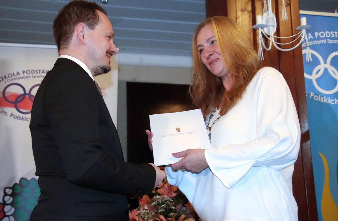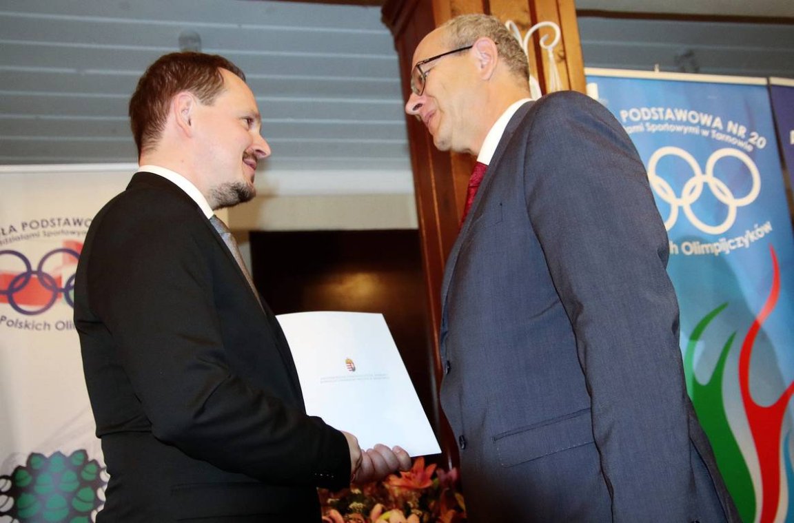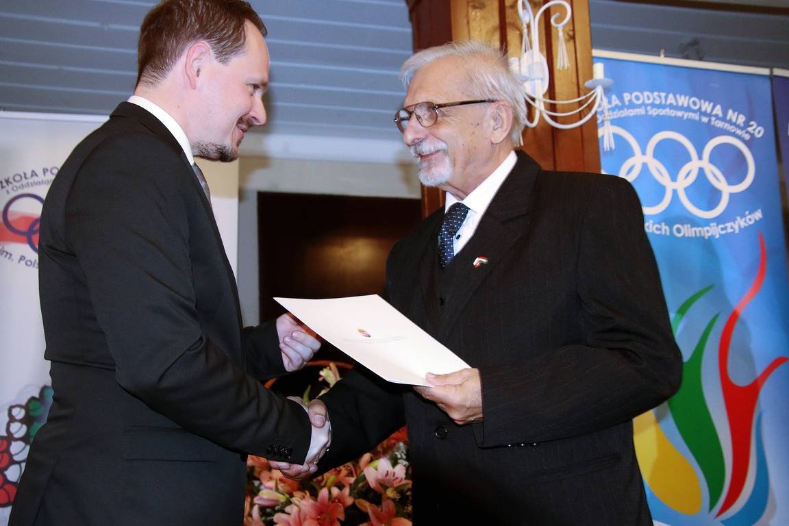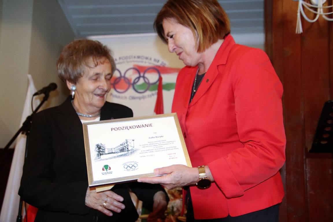 W części oficjalnej Konsul Generalny Węgier wręczył dyr. szkoły Panu Andrzejowi Kot Złoty Krzyż zasługi Republiki Węgierskiej przyznany przez Prezydenta Węgier Panią Katlin Novák. Zostały również wręczone przez Pana Konsula Listy gratulacyjne osobom, które szczególnie zasłużyła się w realizacji współpracy zagranicznej SP20 i strony węgierskiej. Listy otrzymało 8 osób z Węgier i 13 n-li i emerytów szkoły. Dyrektor szkoły przedstawił sytuacje oświaty, odniósł się również do 25 letniej historii współpracy ze szkołami węgierskim. Następnie wręczył podziękowania „za osobisty wkład pracy na rzecz współpracy zagranicznej Szkoły Podstawowej nr 20 w Tarnowie, w szczególności za kreowanie pozytywnego wizerunku szkoły i miasta poza granicami Polski”. Podziękowania otrzymali Pan Konsul dr Tibor Gerencsér, Pani wiceprezydent Bogumiła Porębska oraz Grupa AZOTY SA. Podziękowania trafiły również do tych samych osób z Węgier i SP20, które otrzymały Listy gratulacyjne od Konsula Generalnego. Następnie Dyrektor SP20 wręczył Nagrody dyrektora szkoły oraz podziękowania i statuetki „Serce 20 – tki” sponsorom i przyjaciołom szkoły.