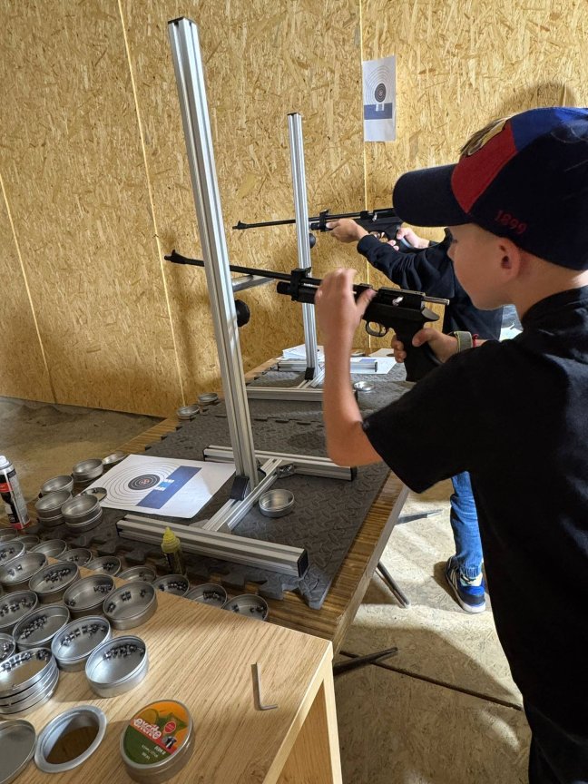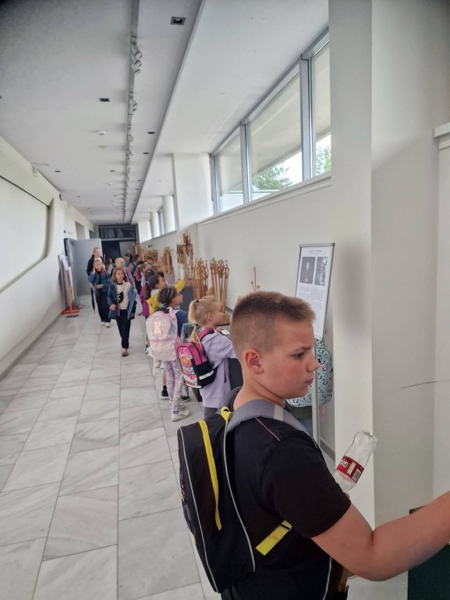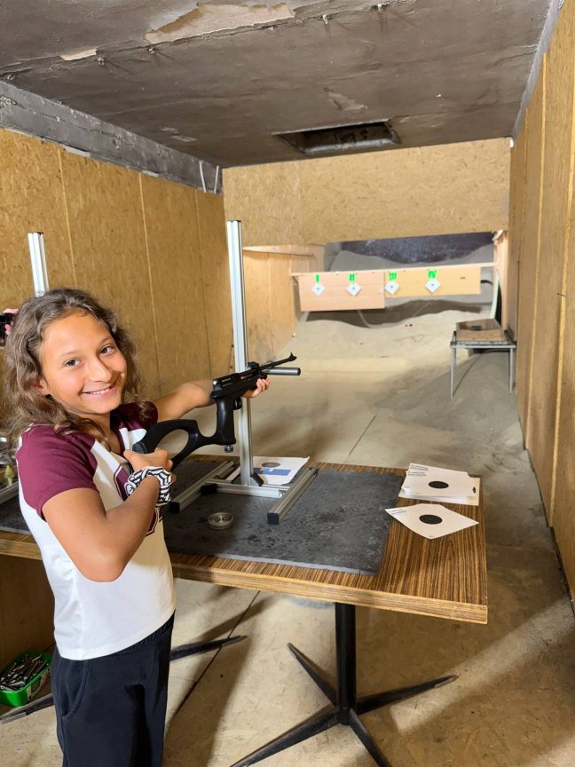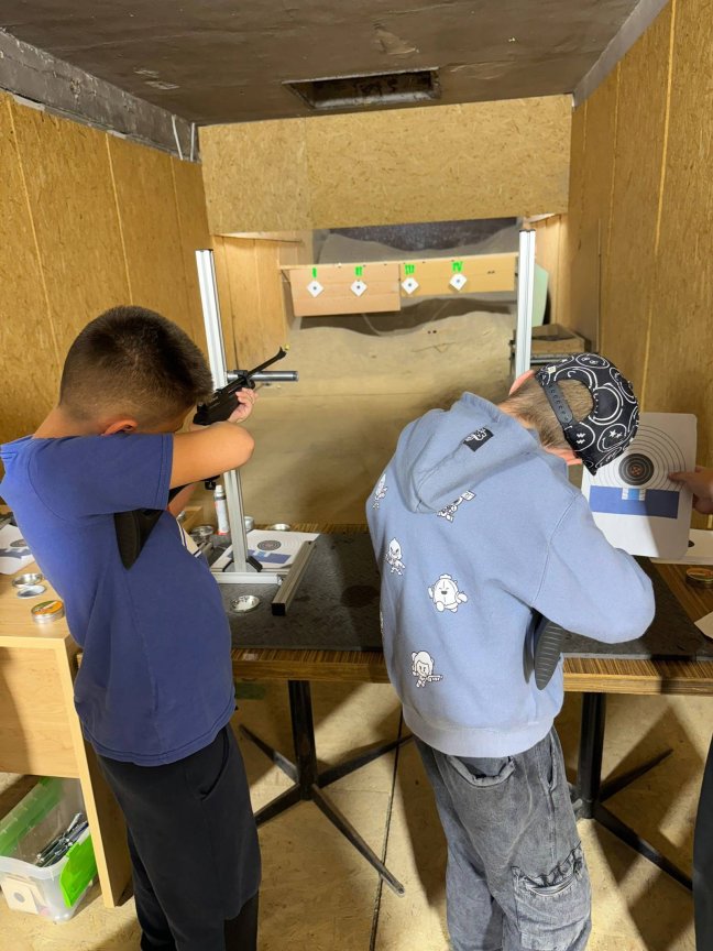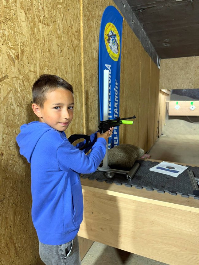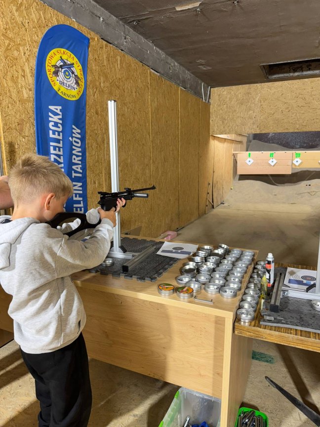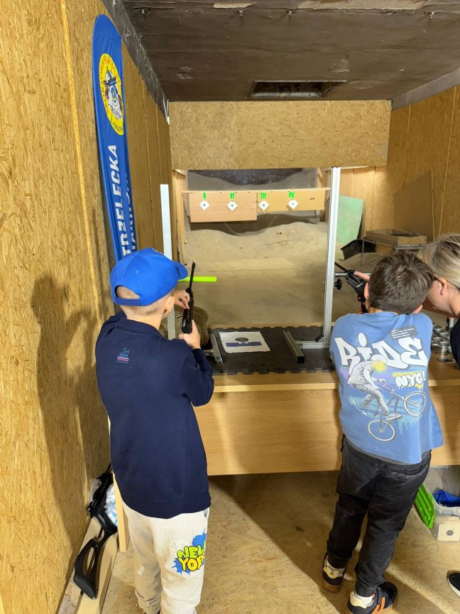 Po seansie oglądali wystawę "Zachwyt II" prof. Piotra Bożka wybitnego przedstawiciela sztuki kinetycznej w Polsce. Pozostali półkoloniści wzięłi udział w zajęciach na strzelnicy DELFIN w Tarnowie. Pod okiem instruktorów mieli okazję zapoznać się z zasadami bezpiecznego posługiwania się bronią. Zajęcia odbywały się w atmosferze skupienia i sportowej rywalizacji, a wielu uczniów wykazało się dużą precyzją.