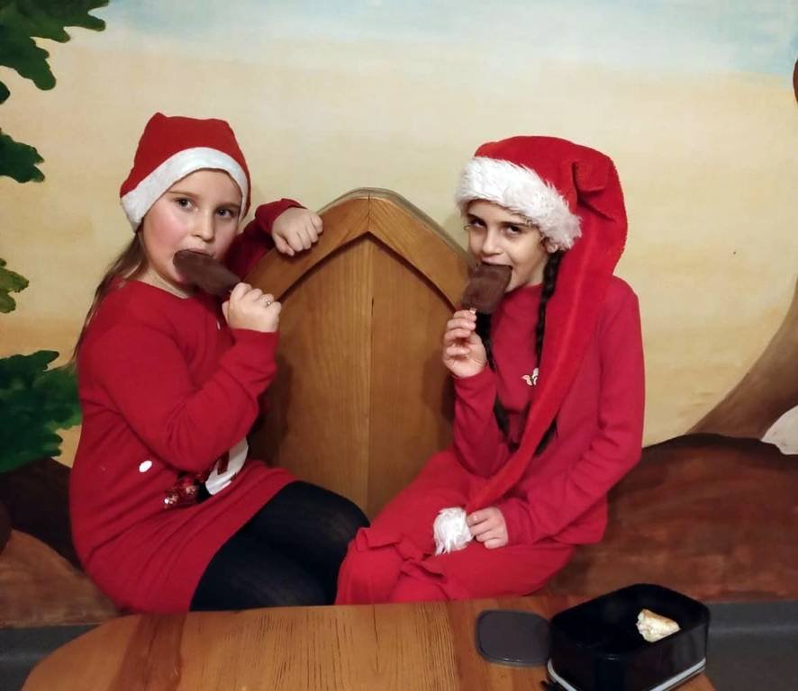W oczekiwaniu na Gościa spędzały czas w bawialni. Wymyślnym zabawom nie było końca… Nagle rozległ się dźwięczny głos dzwonka i w drzwiach ukazał się Mikołaj w towarzystwie wesołego Elfa. I tak, ku ogromnej radości dzieci rozpoczął się czas rozdawania prezentów. Nie było łatwo dostać upominek, bo każdy musiał wykonać zadanie nakazane przez Elfa, a cała klasa miała zaśpiewać piosenkę. Wzruszony umiejętnościami dzieci Mikołaj rozdał wszystkim prezenty. Miłą niespodzianką były lody, które dzieci spałaszowały ze smakiem. To był wspaniały, jedyny w swoim rodzaju dzień.