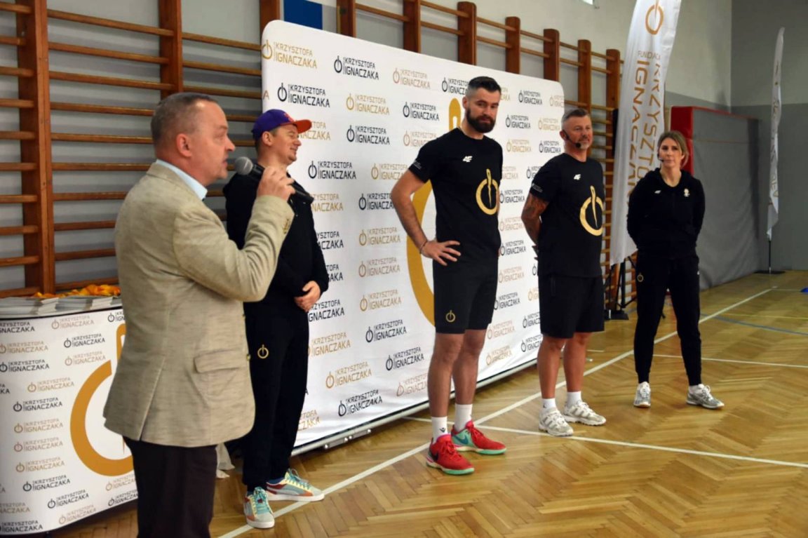Lekcję poprowadzili znani sportowcy: Krzysztof Ignaczak, Milena Sadurek oraz Dawid Dryja. Zajęcia miały na celu promocję aktywności fizycznej i sportowego stylu życia. Uczniowie z dużym zaangażowaniem uczestniczyli w grach i ćwiczeniach, a spotkanie przebiegło w radosnej i energicznej atmosferze. Oprócz wspólnych ćwiczeń i zabaw sportowych odbyła się również ciekawa pogadanka na temat zdrowych nawyków oraz odpowiedzialnych zachowań w internecie, ze szczególnym uwzględnieniem problemu hejtu.