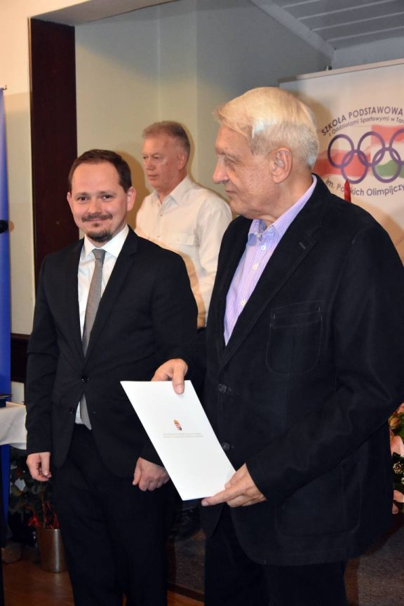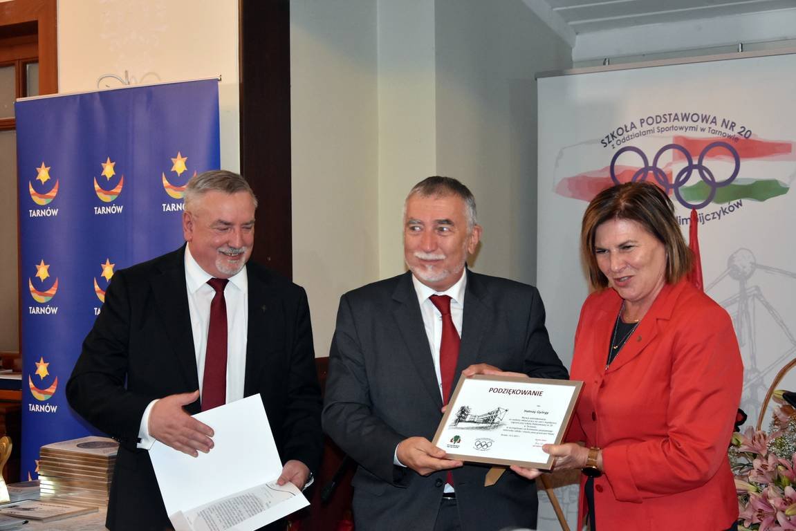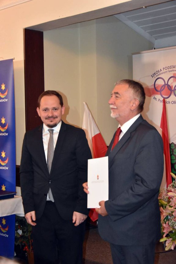 W części oficjalnej Konsul Generalny Węgier wręczył dyr. szkoły Panu Andrzejowi Kot Złoty Krzyż zasługi Republiki Węgierskiej przyznany przez Prezydenta Węgier Panią Katlin Novák. Zostały również wręczone przez Pana Konsula Listy gratulacyjne osobom, które szczególnie zasłużyła się w realizacji współpracy zagranicznej SP20 i strony węgierskiej. Listy otrzymało 8 osób z Węgier i 13 n-li i emerytów szkoły. Dyrektor szkoły przedstawił sytuacje oświaty, odniósł się również do 25 letniej historii współpracy ze szkołami węgierskim. Następnie wręczył podziękowania „za osobisty wkład pracy na rzecz współpracy zagranicznej Szkoły Podstawowej nr 20 w Tarnowie, w szczególności za kreowanie pozytywnego wizerunku szkoły i miasta poza granicami Polski”. Podziękowania otrzymali Pan Konsul dr Tibor Gerencsér, Pani wiceprezydent Bogumiła Porębska oraz Grupa AZOTY SA. Podziękowania trafiły również do tych samych osób z Węgier i SP20, które otrzymały Listy gratulacyjne od Konsula Generalnego. Następnie Dyrektor SP20 wręczył Nagrody dyrektora szkoły oraz podziękowania i statuetki „Serce 20 – tki” sponsorom i przyjaciołom szkoły.
