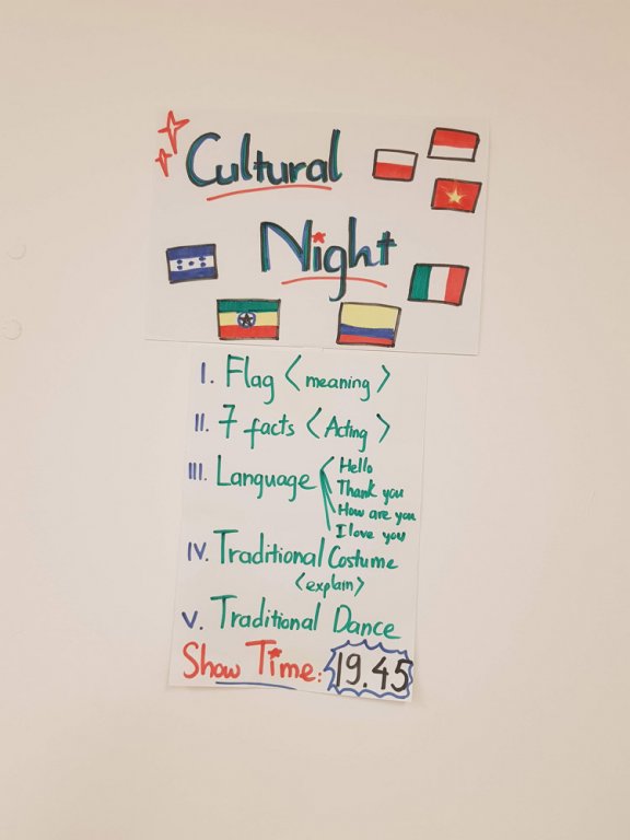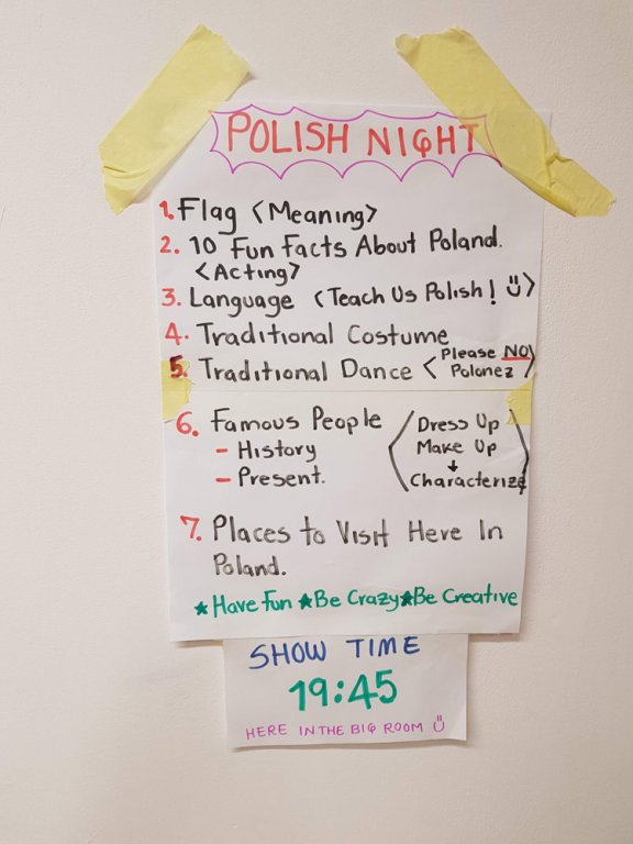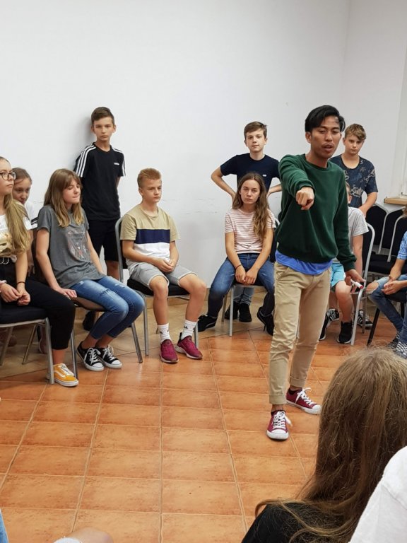 Zajęcia odbywały się w języku angielskim i były prowadzone przez wolontariuszy z różnych stron świata: Alex z Hondurasu, Sunny i Nam z Wietnamu, Natalie i Alejandro z Kolumbii, Riki z Indonezji, Pizza z Włoch, Adam z Etiopii oraz wielu innych. Uczniowie mieli okazję dowiedzieć się wielu ciekawych rzeczy o różnych kulturach, tradycjach, a nawet zatańczyć narodowe tańce czy nauczyć się popularnych zwrotów językowych.
